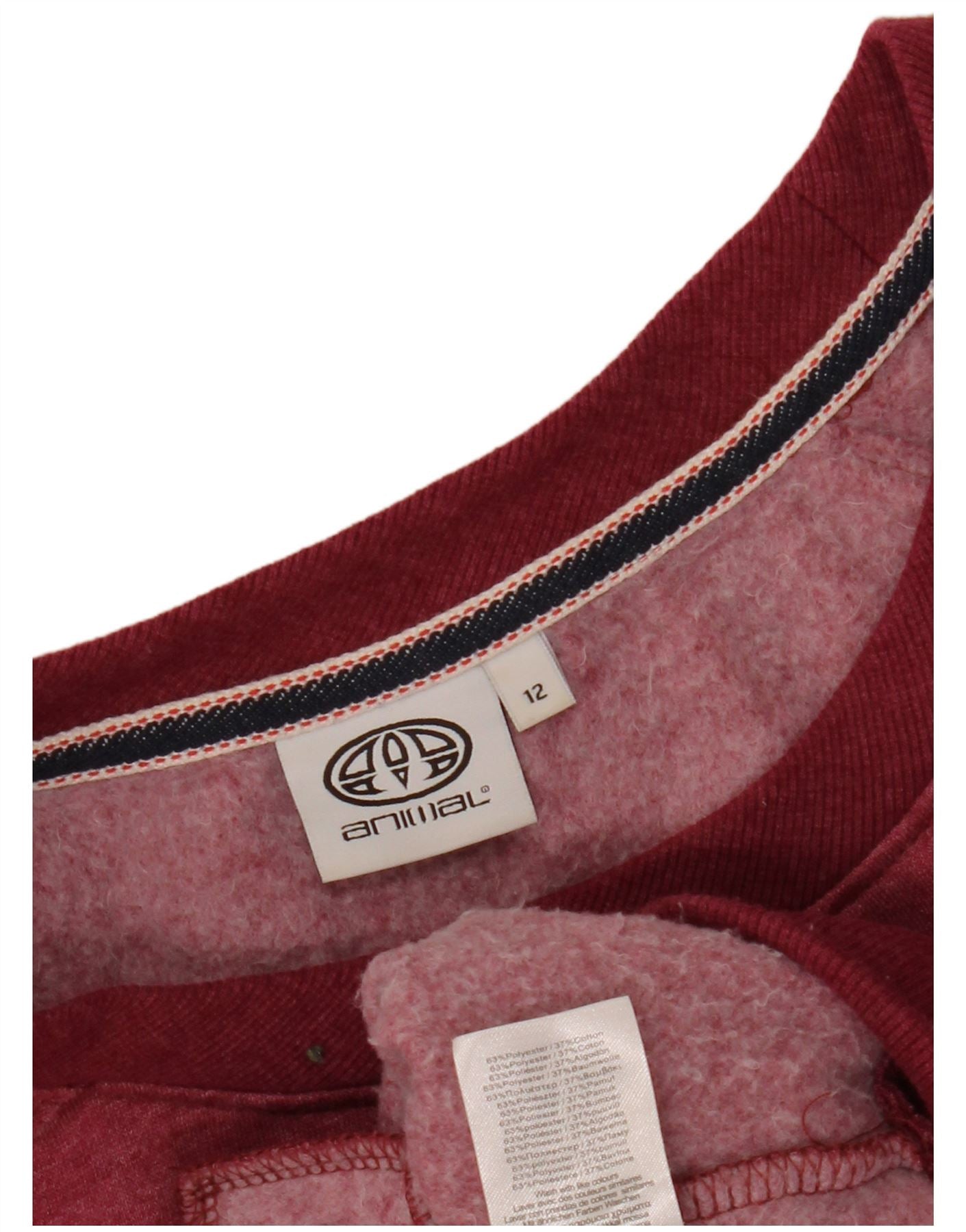 ANIMAL Dame Grafisk Sweatshirt Jumper UK 12 Medium Burgundy Polyester