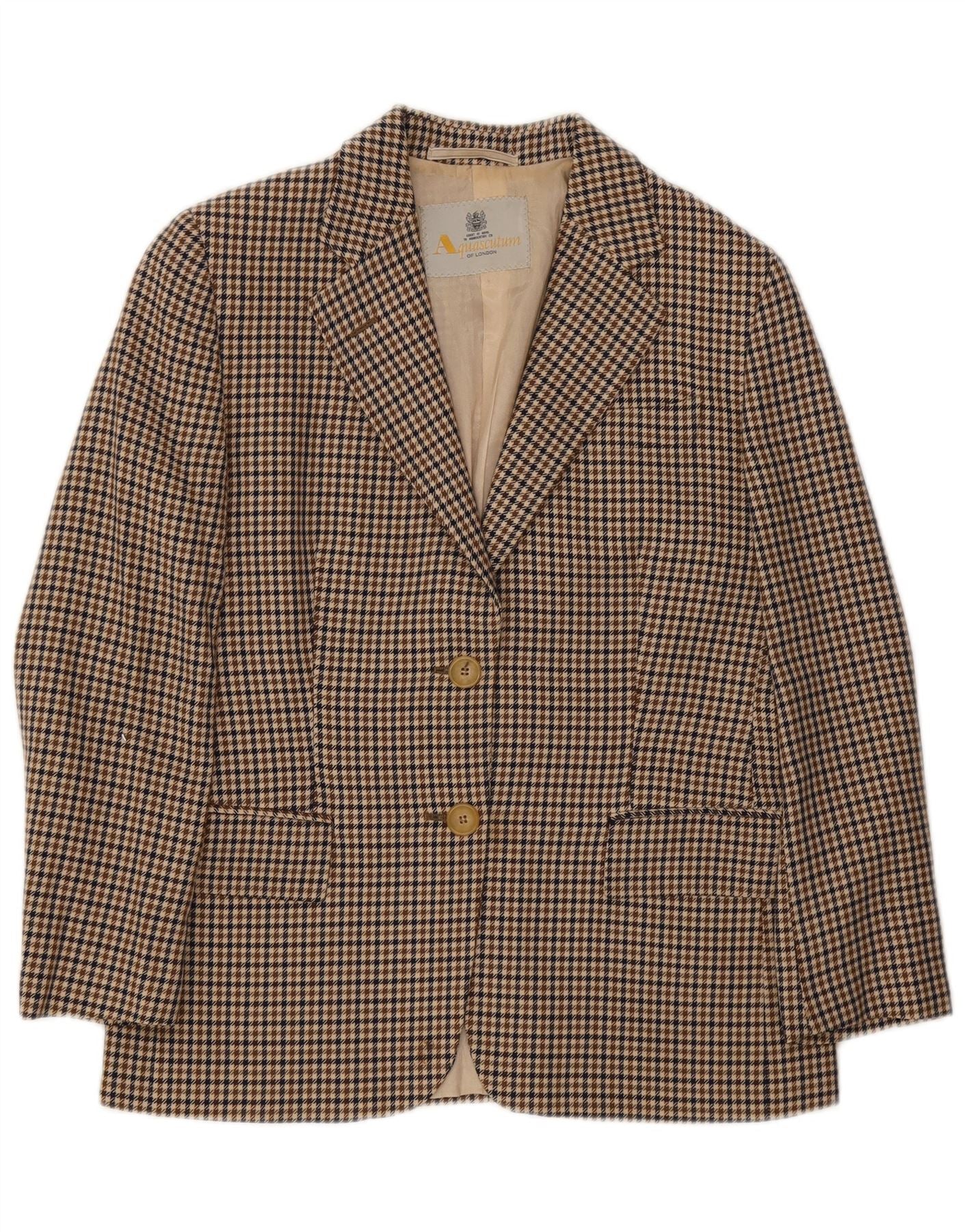 AQUASCUTUM Womens 2 Button Blazer Jacket IT 42 Medium Brown Houndstooth