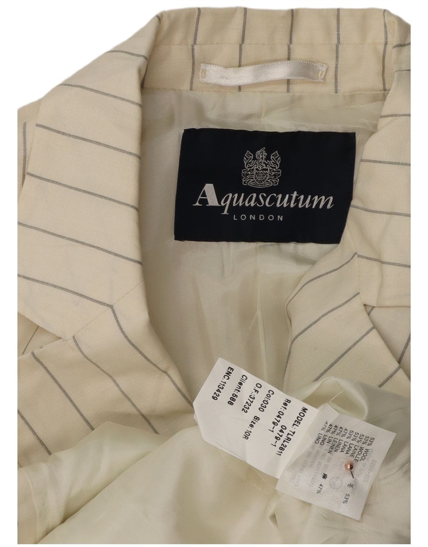 AQUASCUTUM Dame 2-knaps blazerjakke UK 10 Lille hvid nålestribet uld