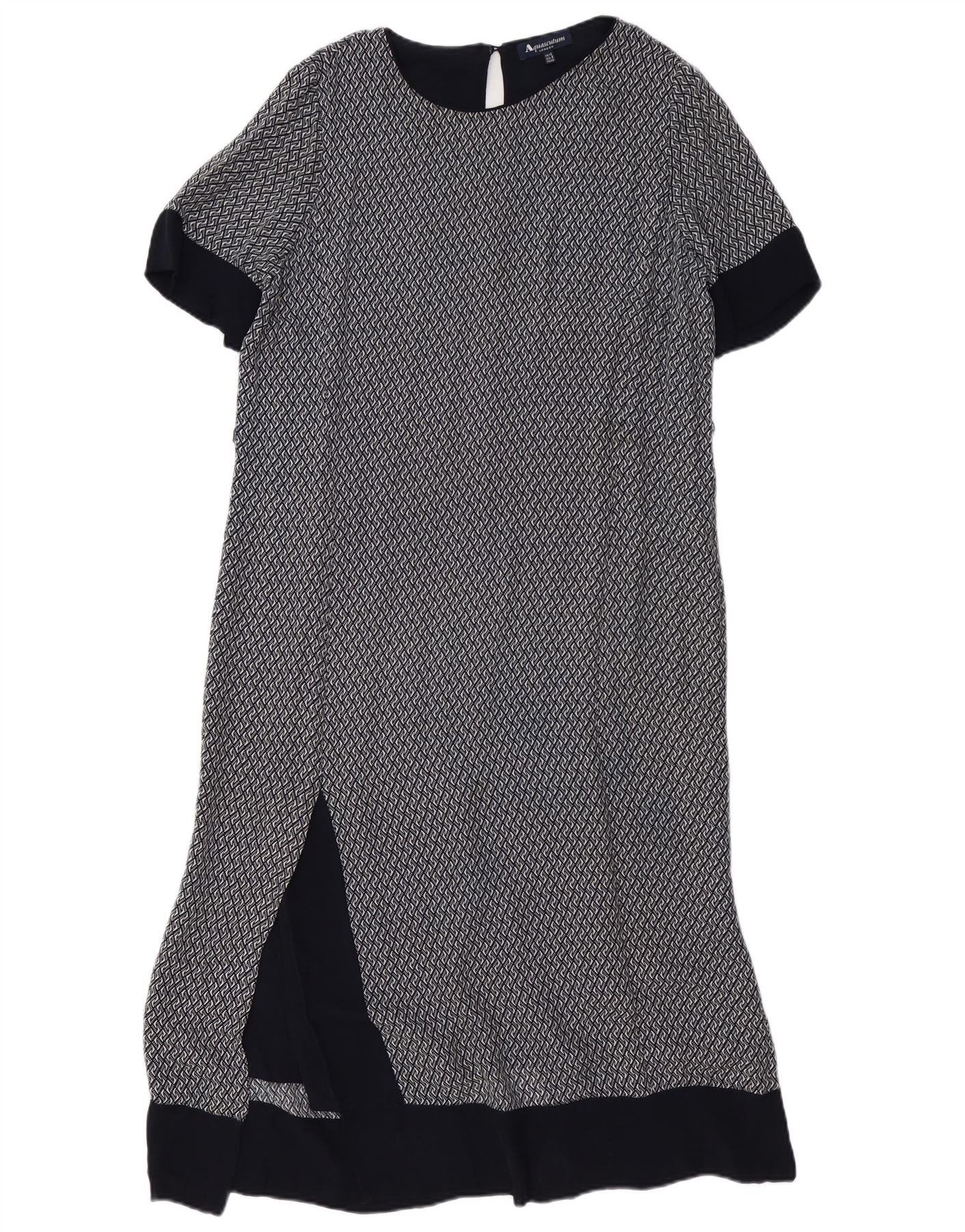 AQUASCUTUM Dame Maxikjole UK 12 Mellem marineblå geometrisk silke