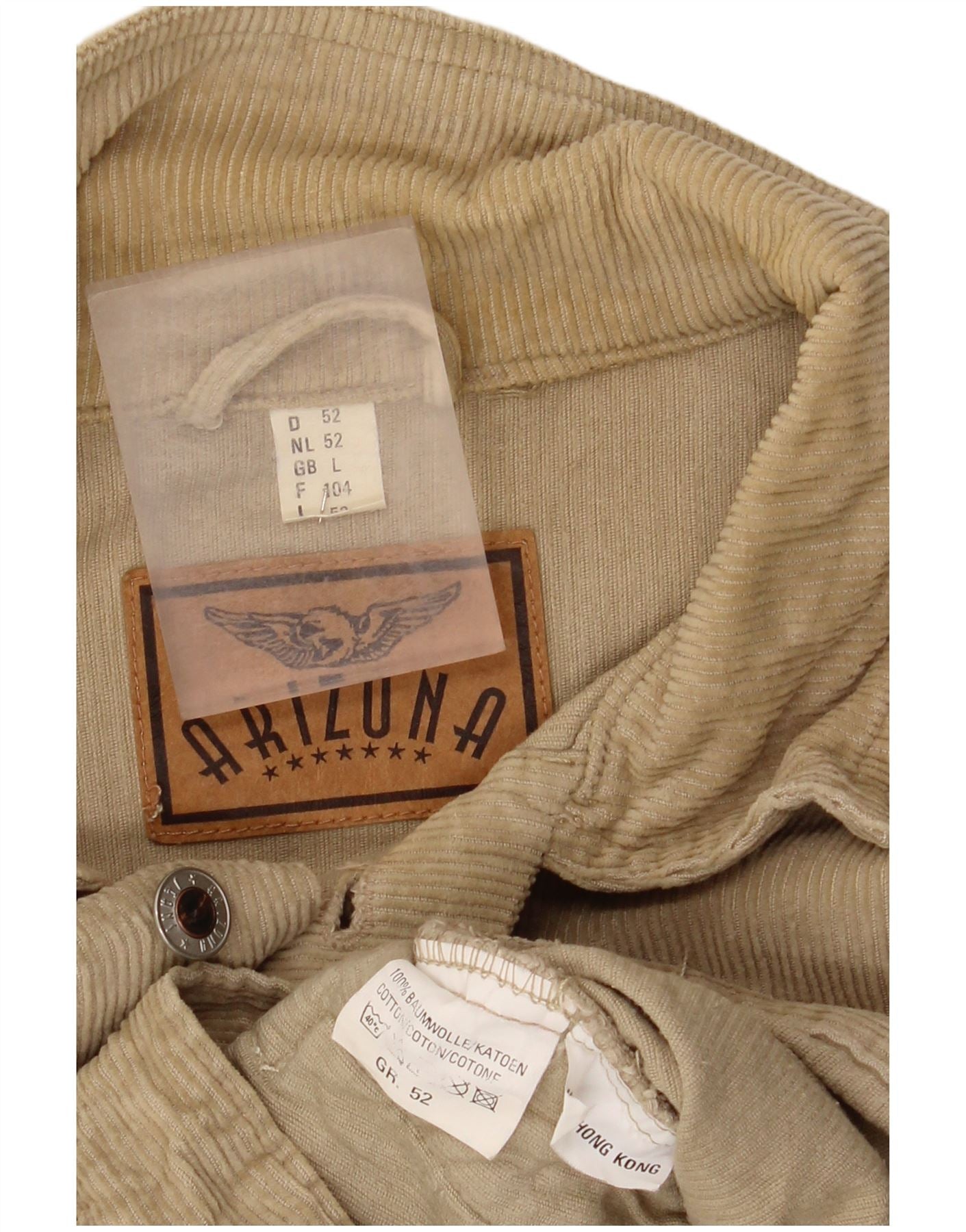 ARIZONA Herre fløjlsjakke UK 40 Stor Beige Bomuld