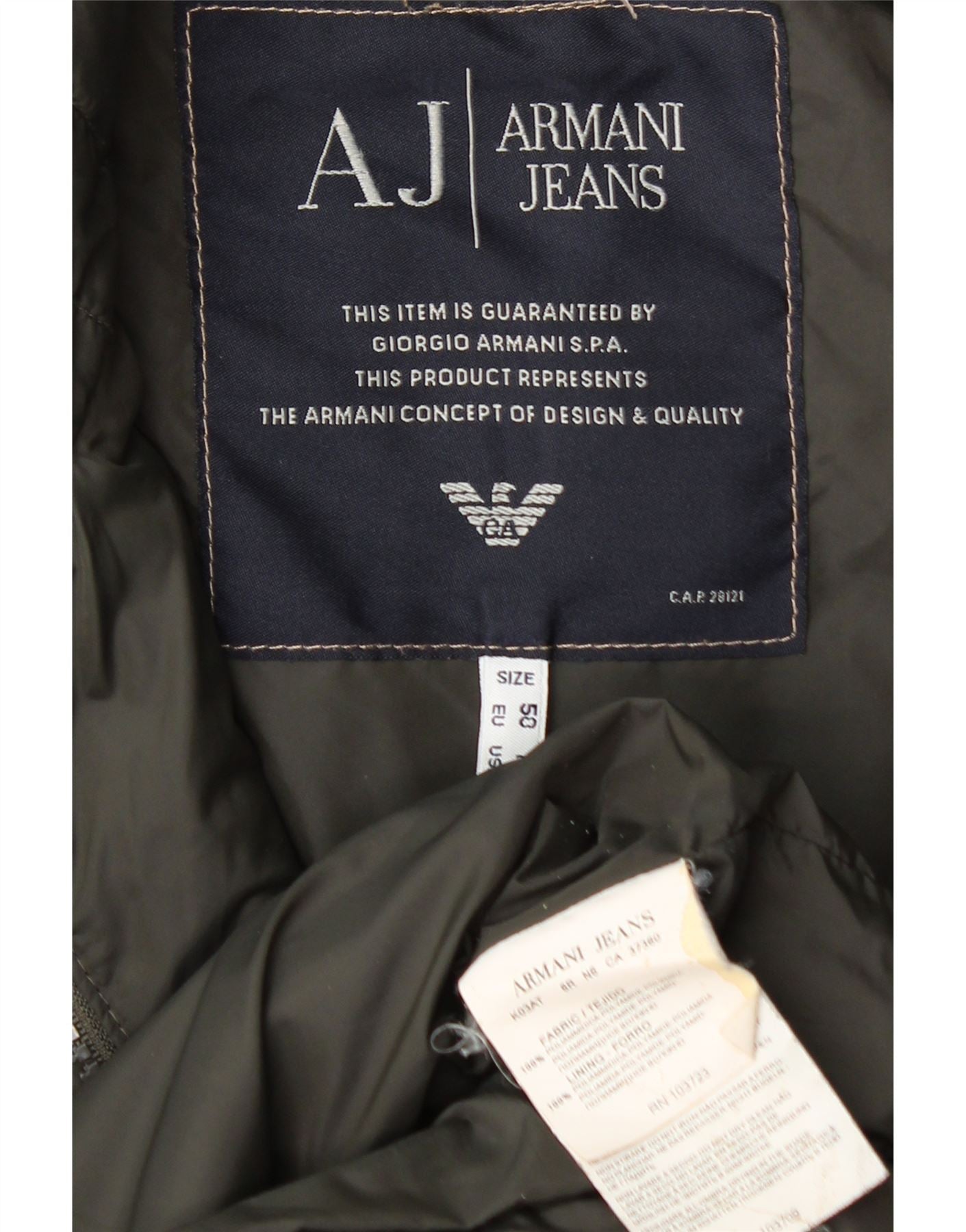 ARMANI JEANS Polstret jakke til mænd UK 36 Small Khaki Polyamid