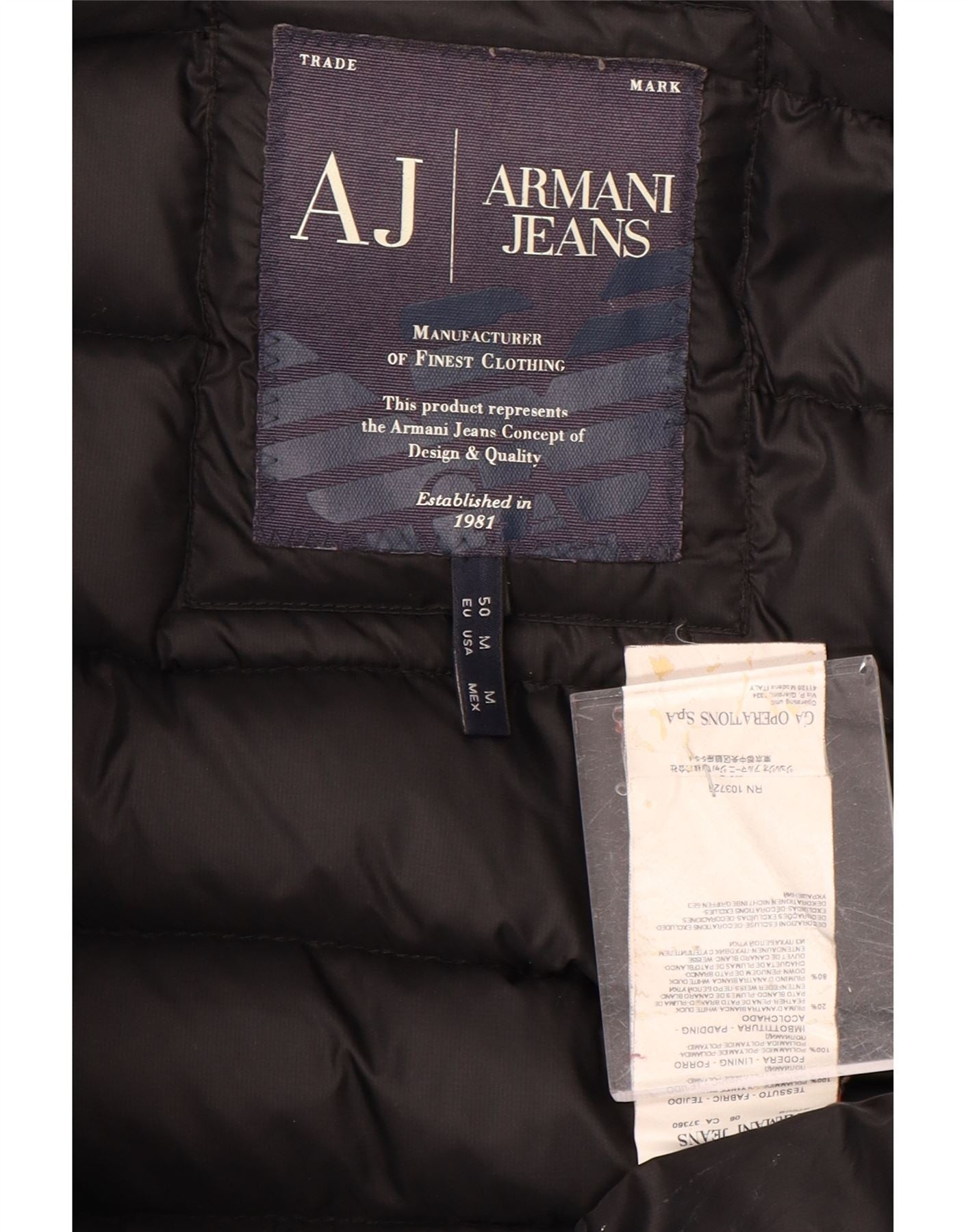 ARMANI JEANS Dame hættepolstret jakke UK 14 Medium Sort Polyamid