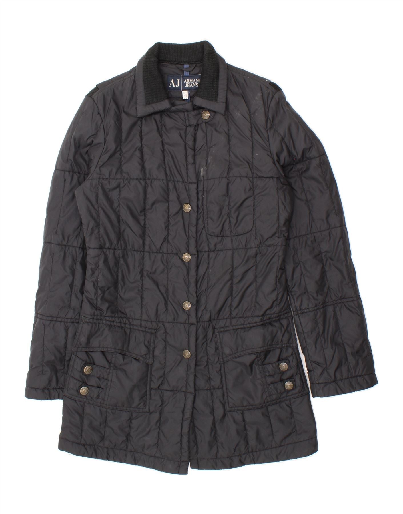 ARMANI JEANS Womens Padded Coat UK 10 Small Black Polyamide