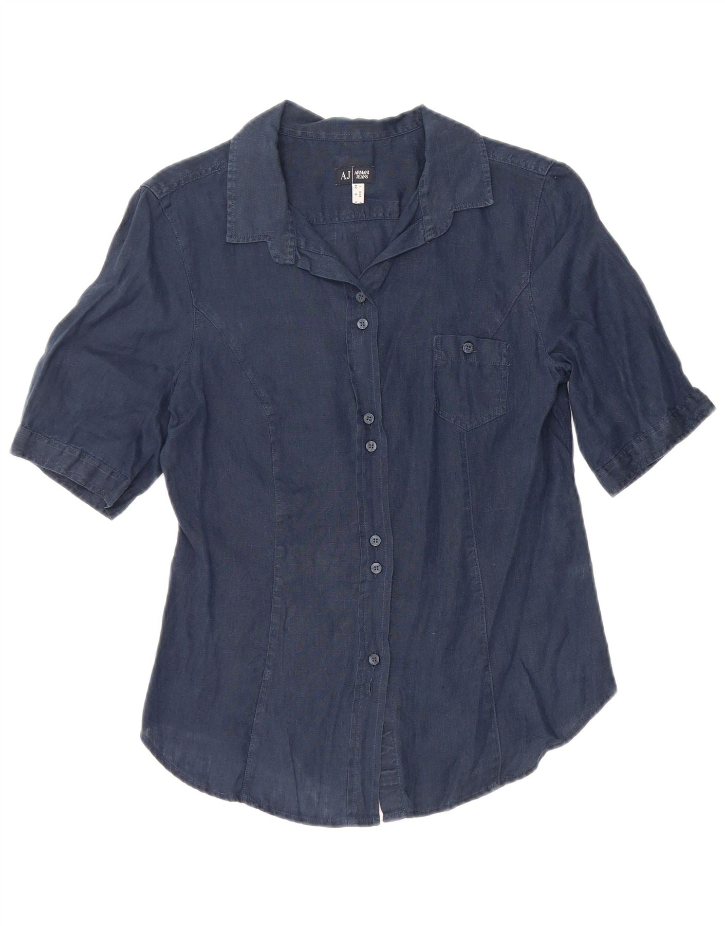 ARMANI JEANS Kortærmet skjortebluse til kvinder UK 12 Mellem marineblå hør
