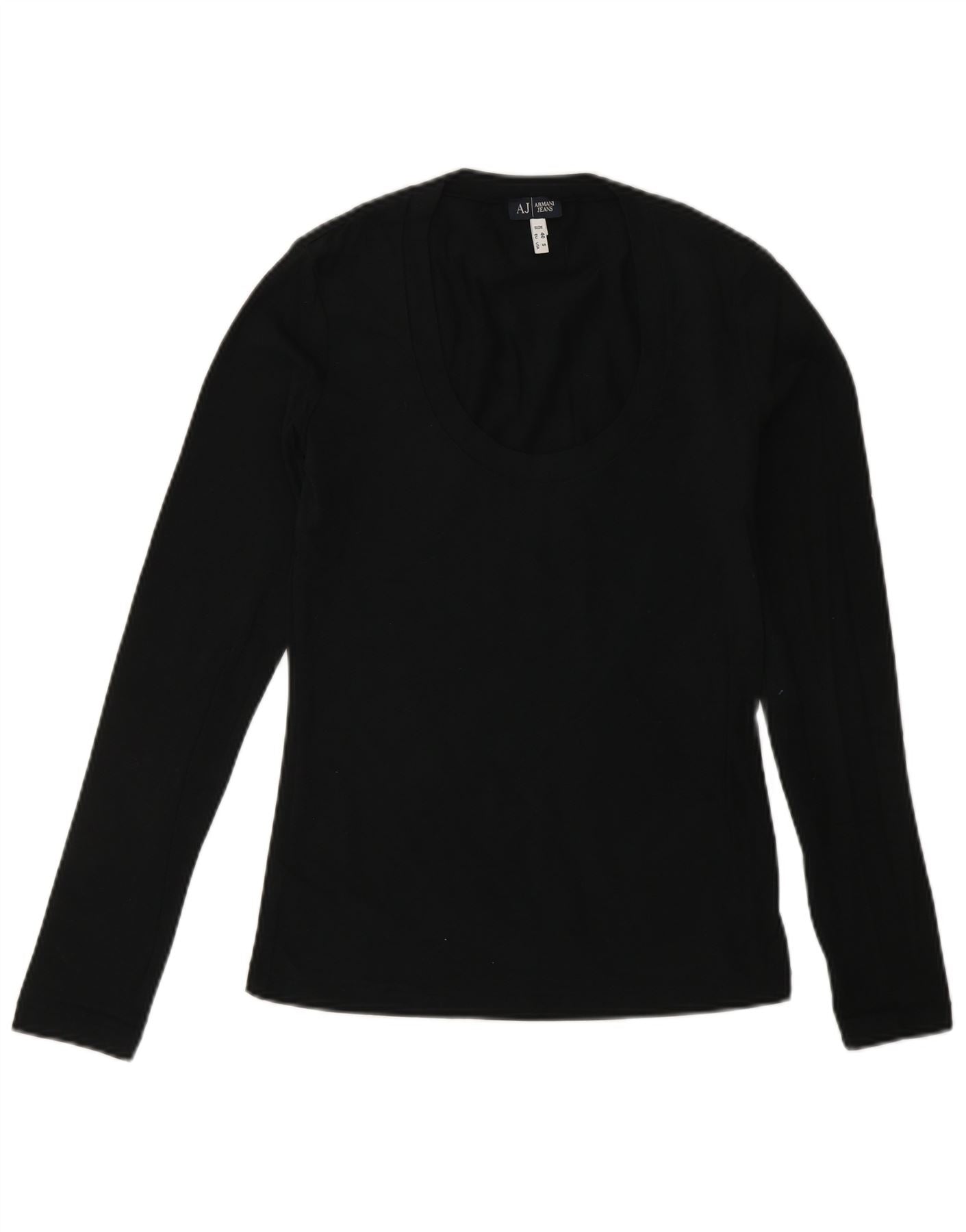 ARMANI JEANS Dame Top Langærmet UK 10 Small Black Bomuld