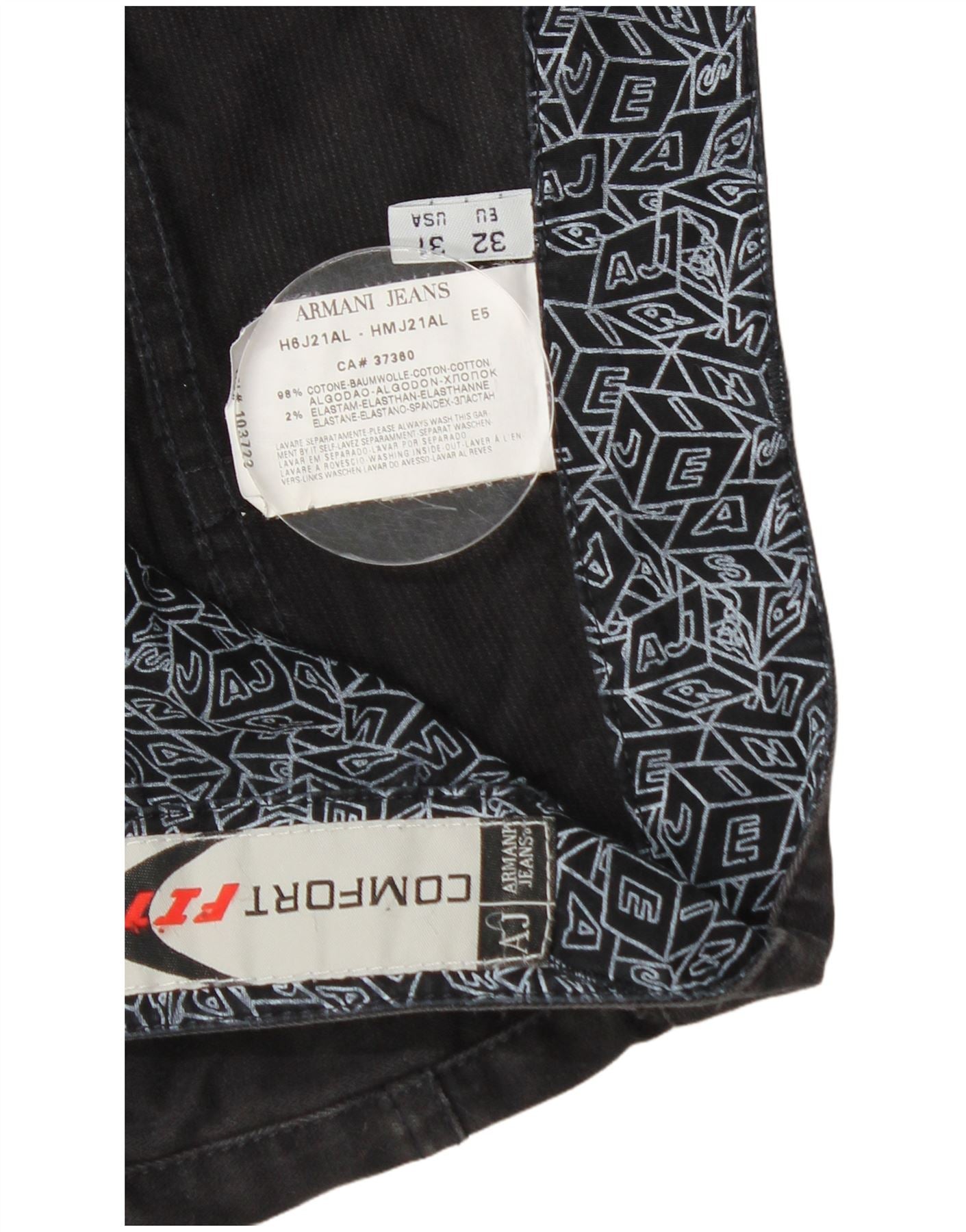ARMANI Mens Comfort Fit Straight Cropped Trousers W32 L24 Black Cotton