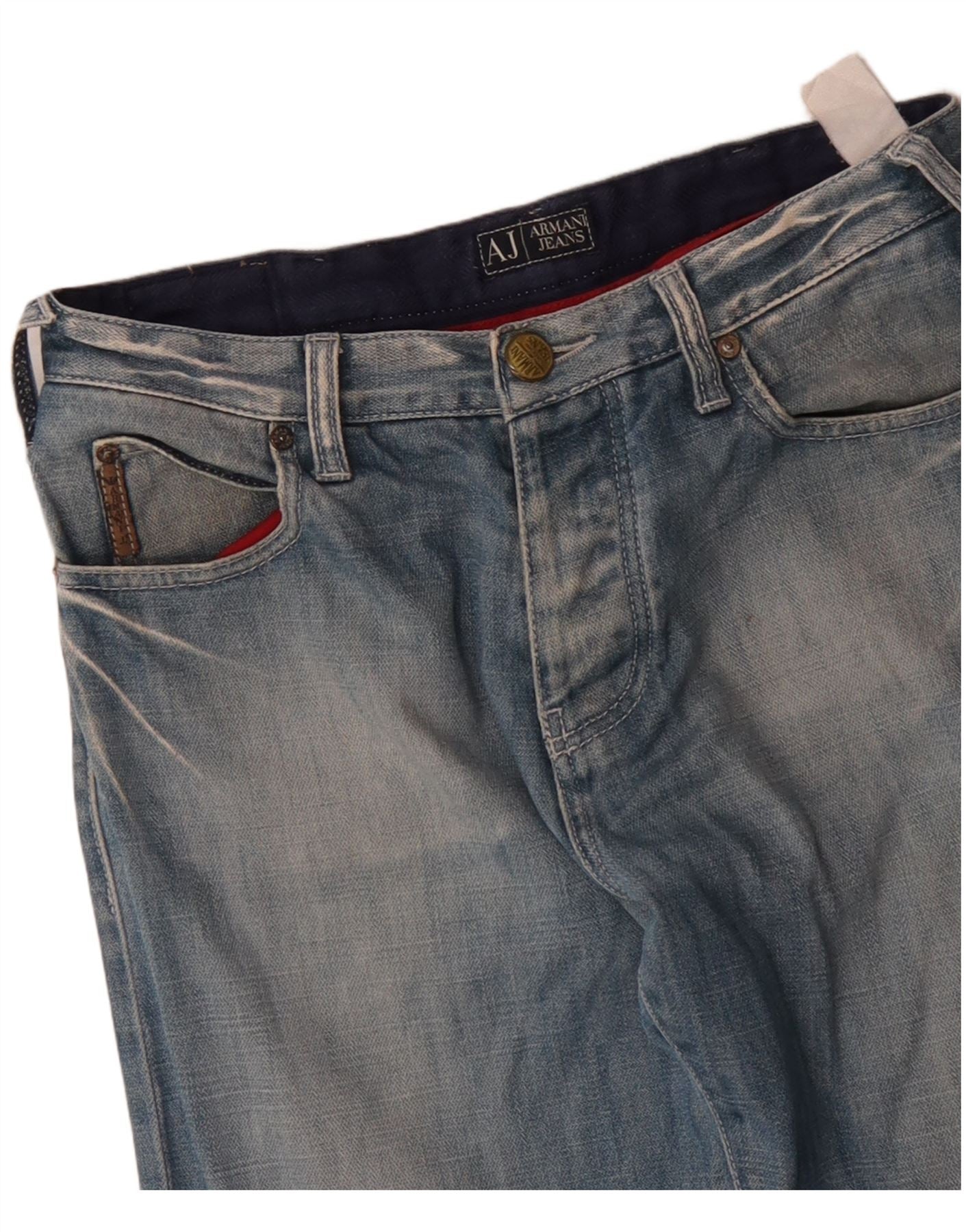 Home > Vintage Armani tøj > Mænds > Jeans > ARMANI Herre Graphic Distressed Straight Jeans W29 L31 Blå