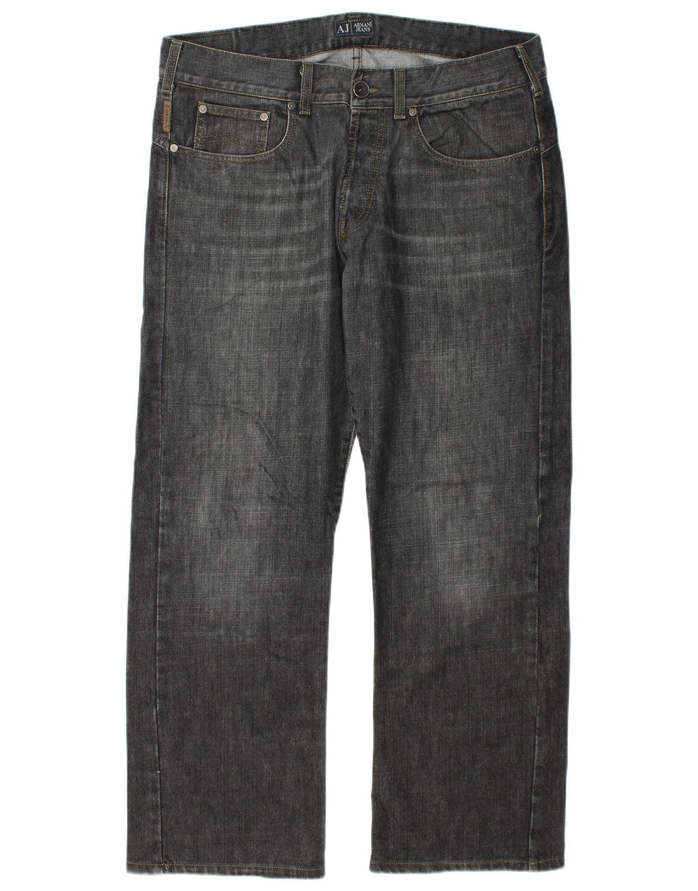 - AI Description: These Emporio Armani mens Straight Jeans are crafted from durable grey denim. They feature a classic straight leg cut for a timeless silhouette. A button closure secures the front. Practical pockets are included for everyday utility. The regular fit ensures comfortable wear. This design offers a versatile foundation for any casual wardrobe.