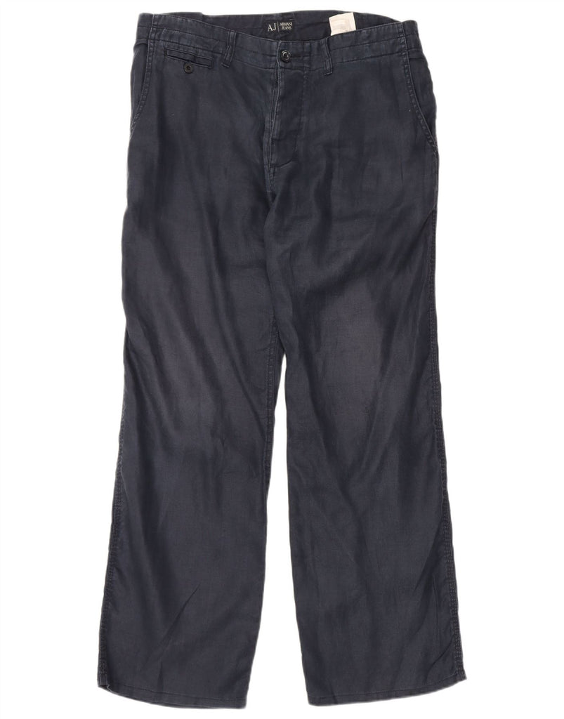 ARMANI Mens Wide Leg Casual Trousers EU 50 Large W33 L32 Navy Blue Ramie