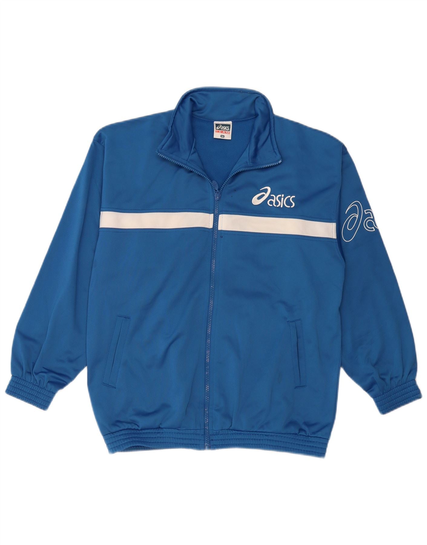 ASICS Boys Graphic Tracksuit Top Jacket 13-14 Years Blue Colourblock