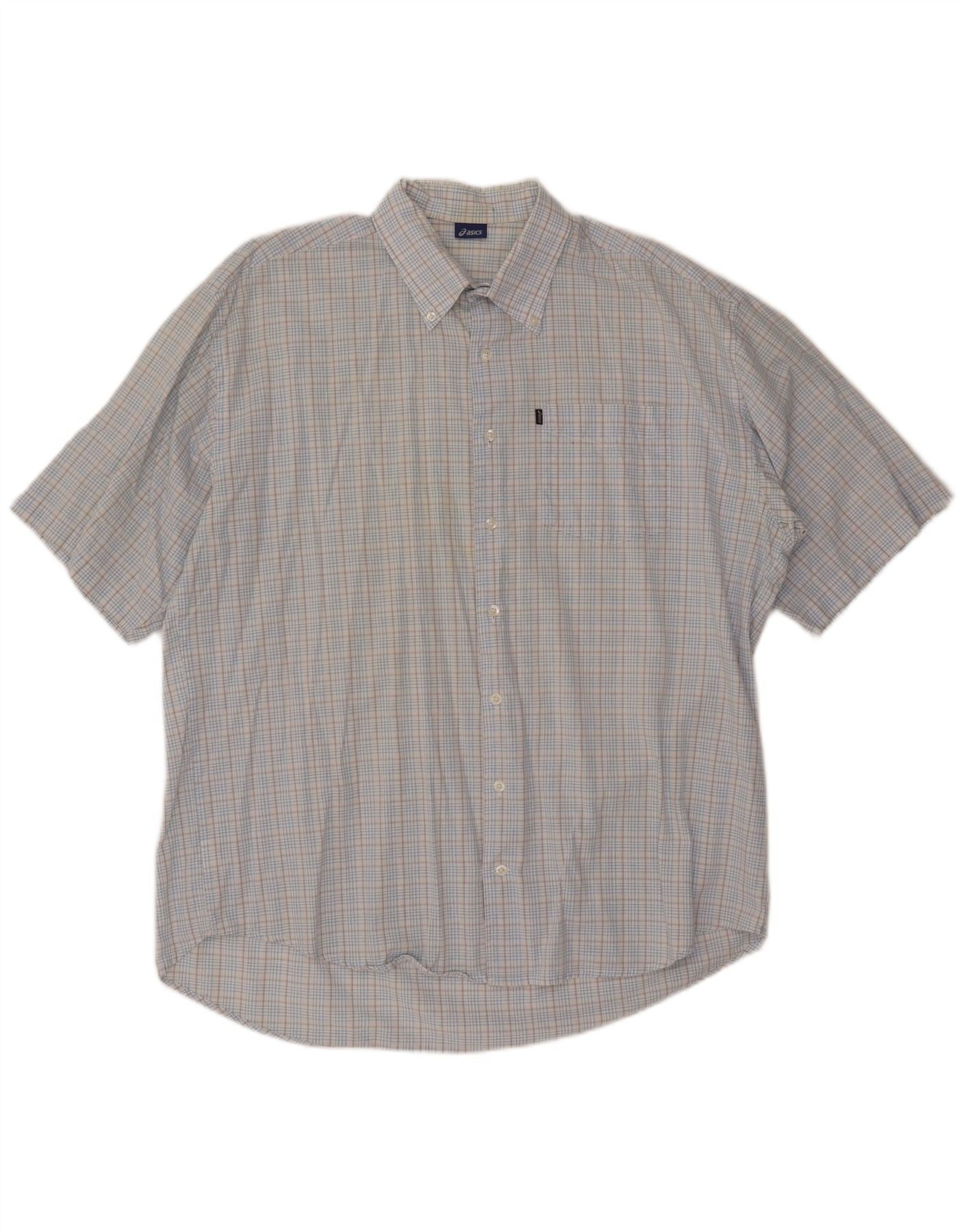 ASICS kortærmet herreskjorte 2XL blå ternet bomuld