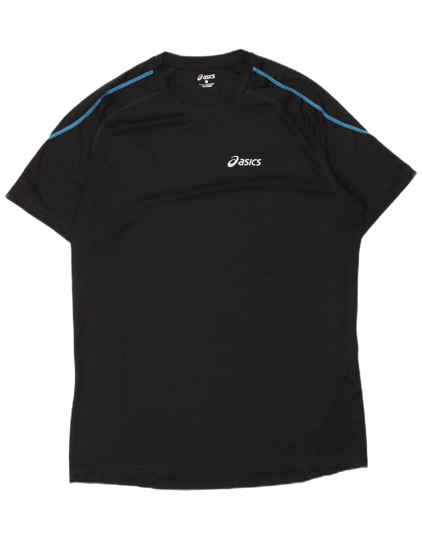 - AI Description: This Asics mens Graphic T-Shirt Top is crafted from 100 percent polyester knit, offering a lightweight and breathable feel. Its classic round neck and short sleeves provide a comfortable, athletic fit. The pullover design ensures ease of wear. A subtle logo accent adds a signature touch to this performance-focused garment, ideal for sports activities.