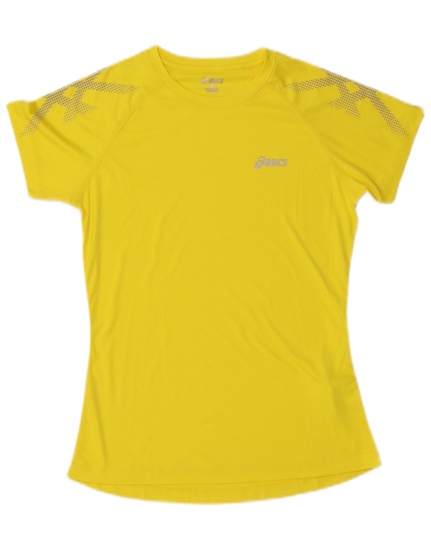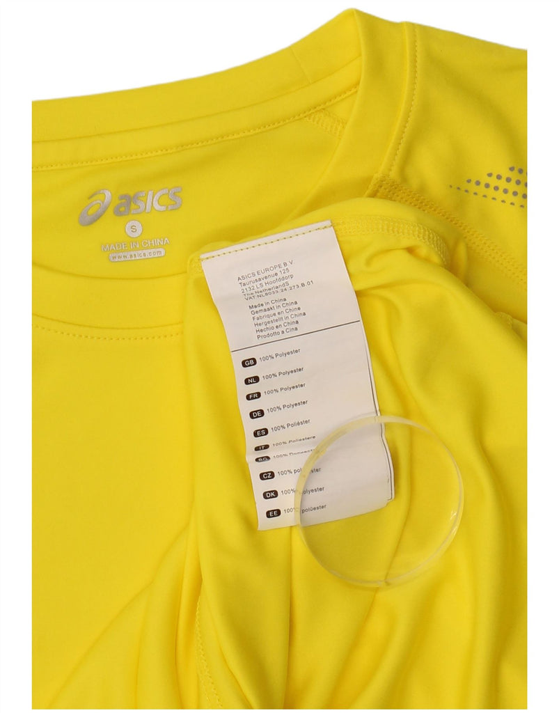 ASICS Womens Motion Dry T-Shirt Top UK 10 Small Yellow Spotted Polyester