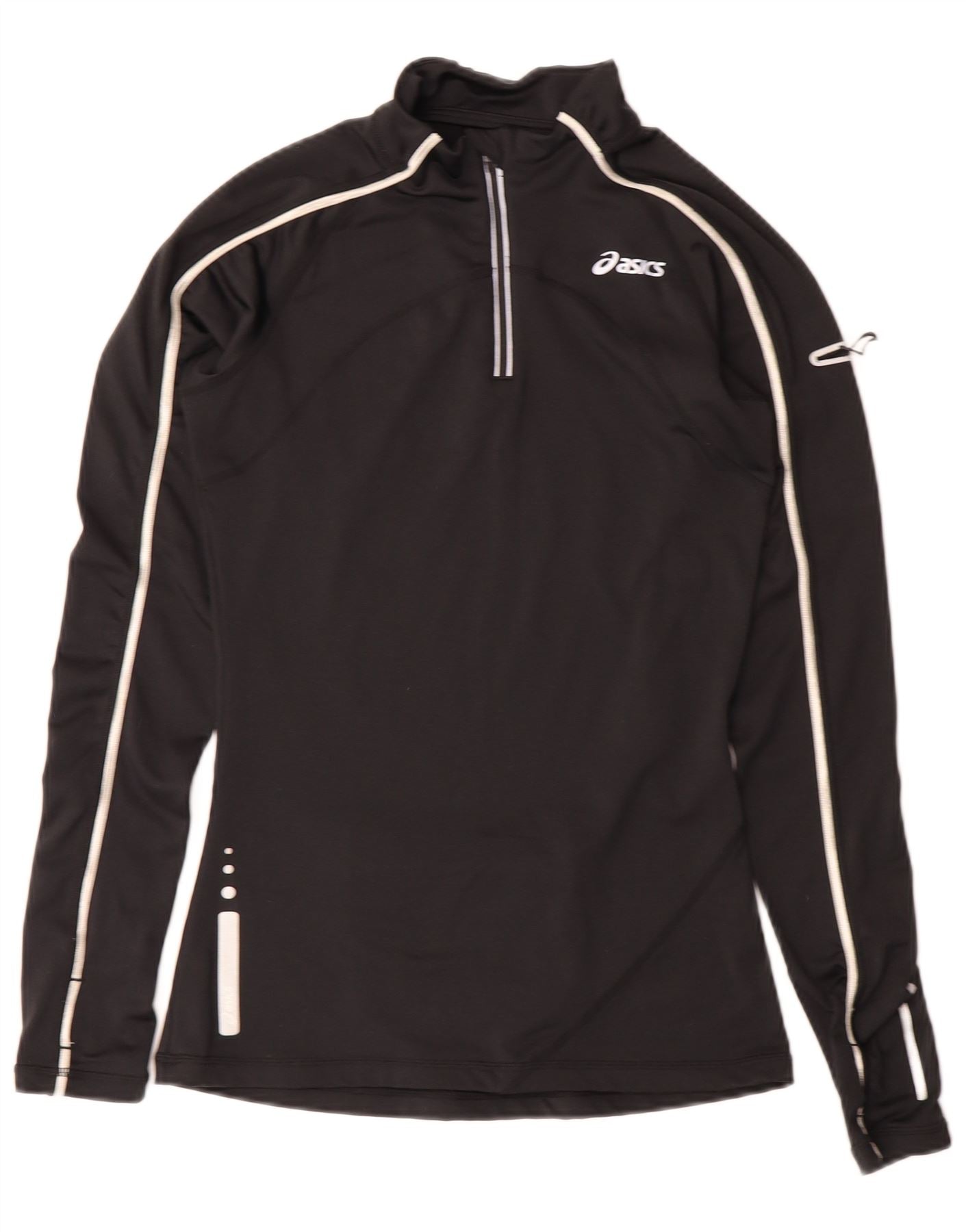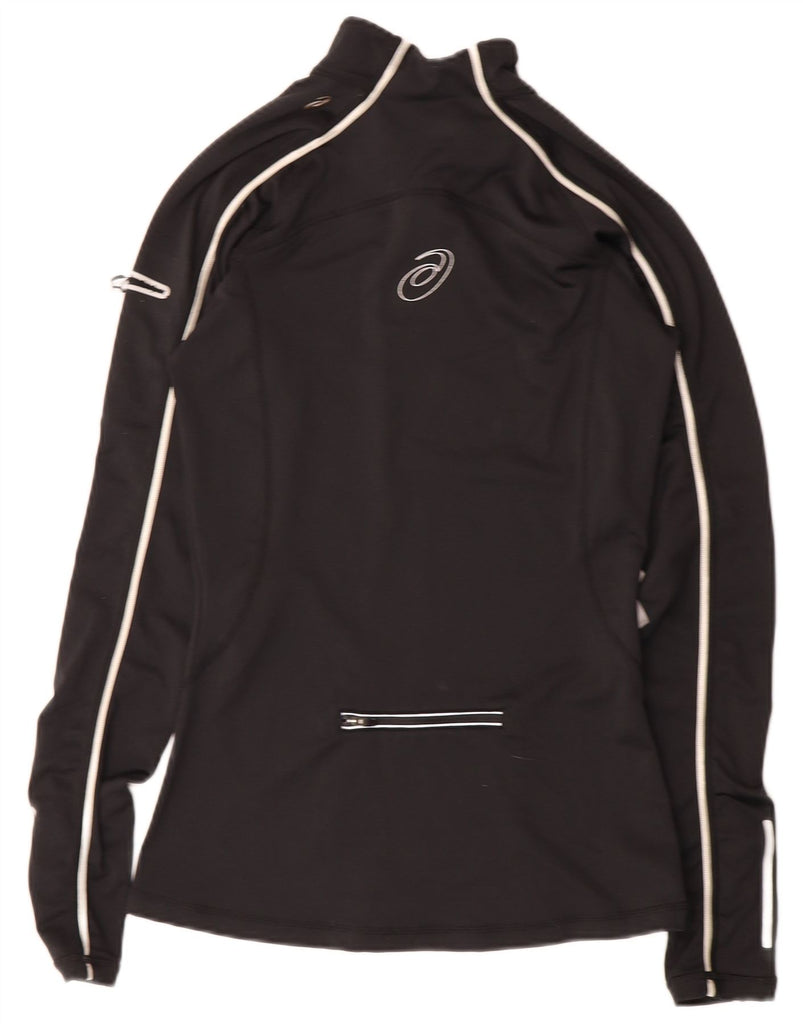 ASICS Womens Zip Neck Pullover Tracksuit Top UK 6 XS Black Polyester