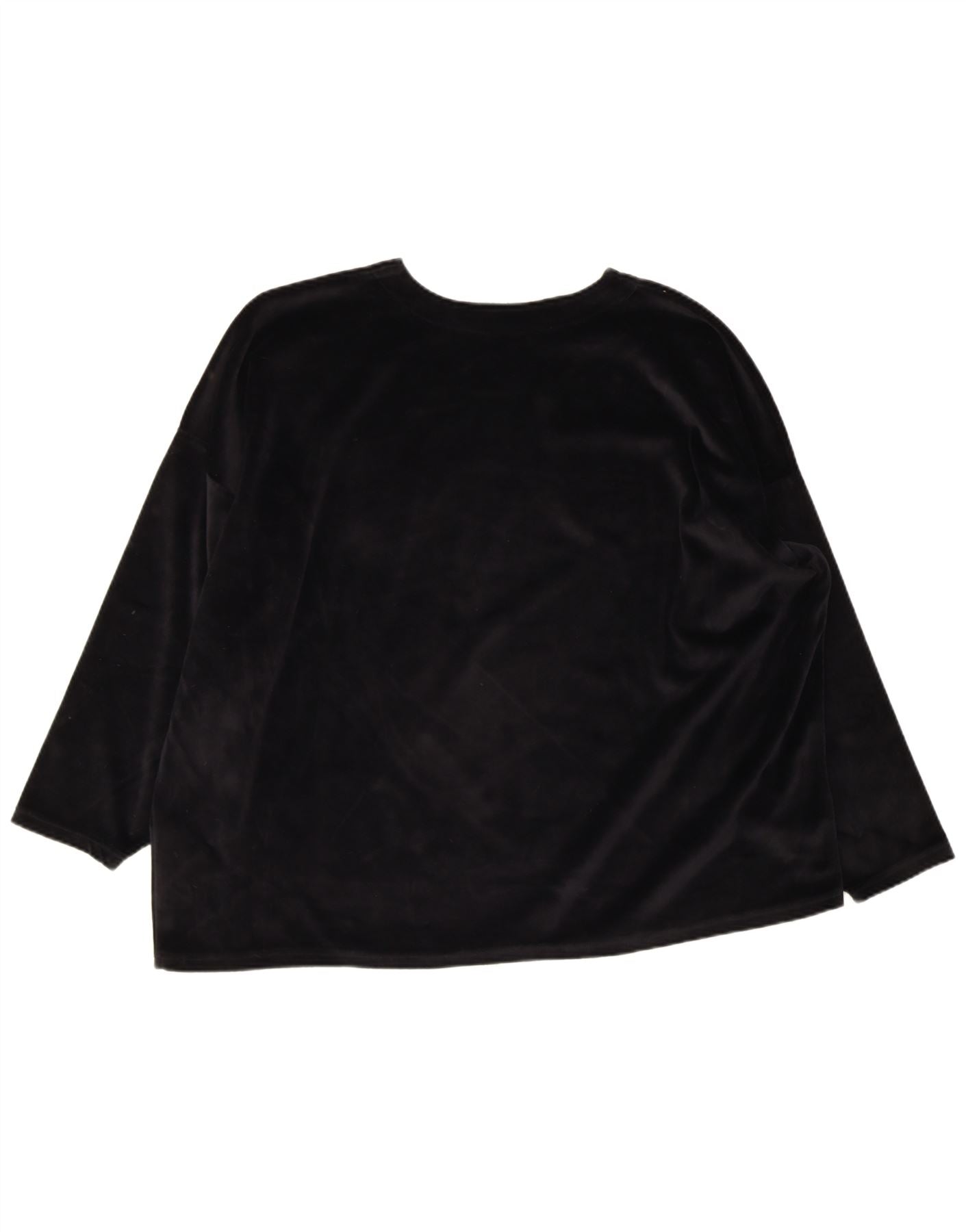 - AI Description: This Atelier Goldner Schnitt womens Graphic T-Shirt Top is crafted from luxurious black velour, offering a soft, plush texture. It features a classic round neck and long sleeves for comfortable coverage. The pullover design ensures effortless wear. A striking graphic design is enhanced with sequin accents, adding a touch of retro sparkle. The relaxed fit provides comfortable, easy styling.