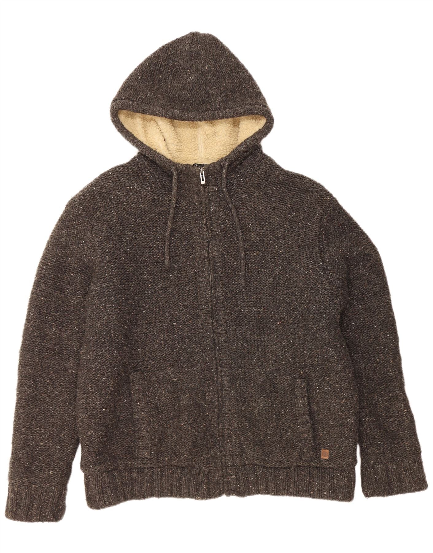 AUTENTISK Sherpa cardigan sweater med hætte til mænd 2XL grå flækket akryl