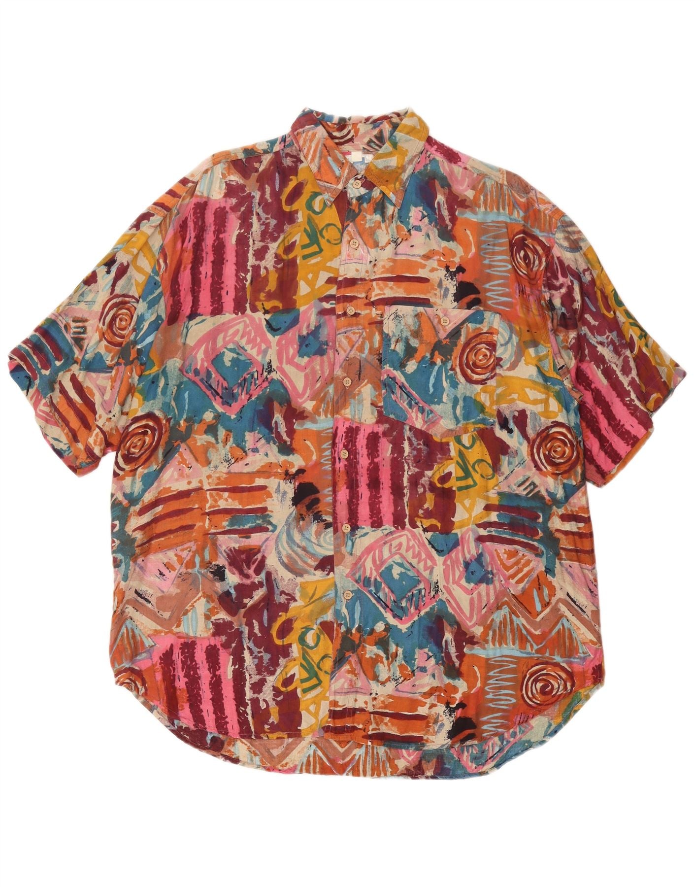 AVANTI kortærmet herreskjorte XL flerfarvet geometrisk viskose