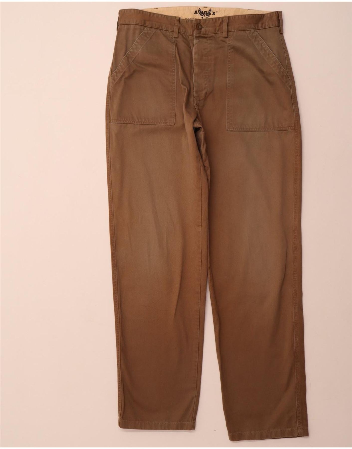 AVIREX Straight Chino-bukser til mænd W34 L33 Brun bomuld