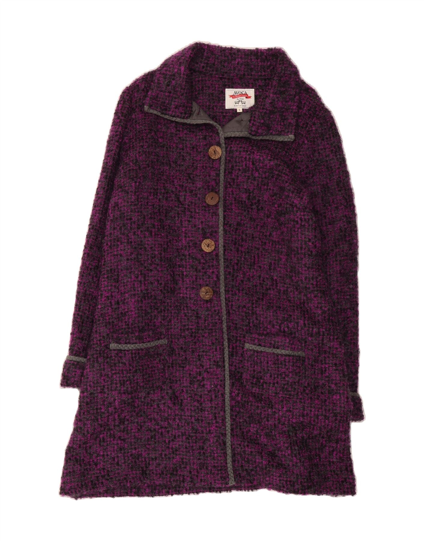 AVOCA Womens Abstract Pattern Oversized Overcoat UK 5 XS Purple Classic