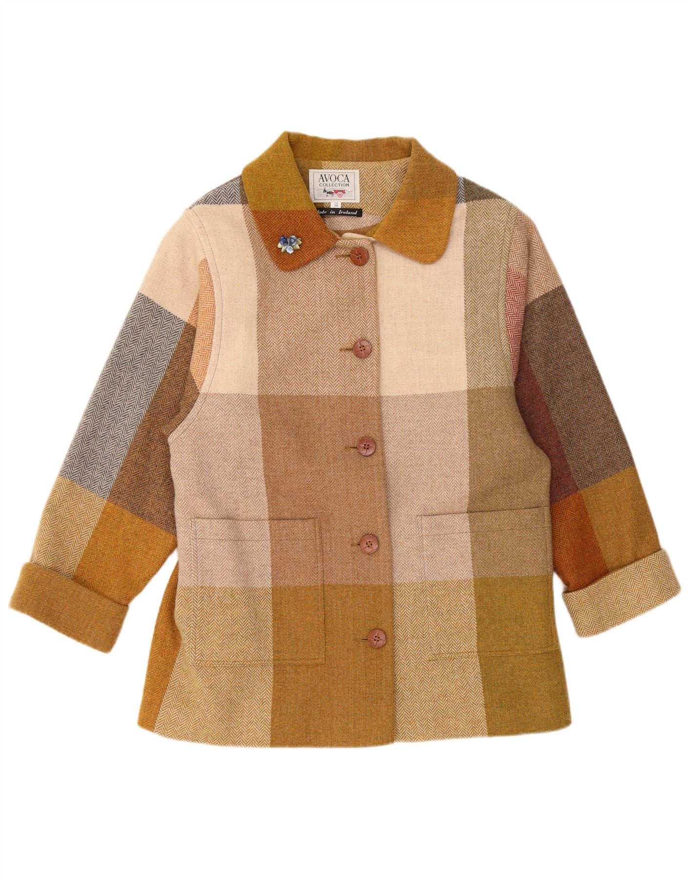 AVOCA Womens Overcoat UK 12 Medium Multicoloured Herringbone New Wool