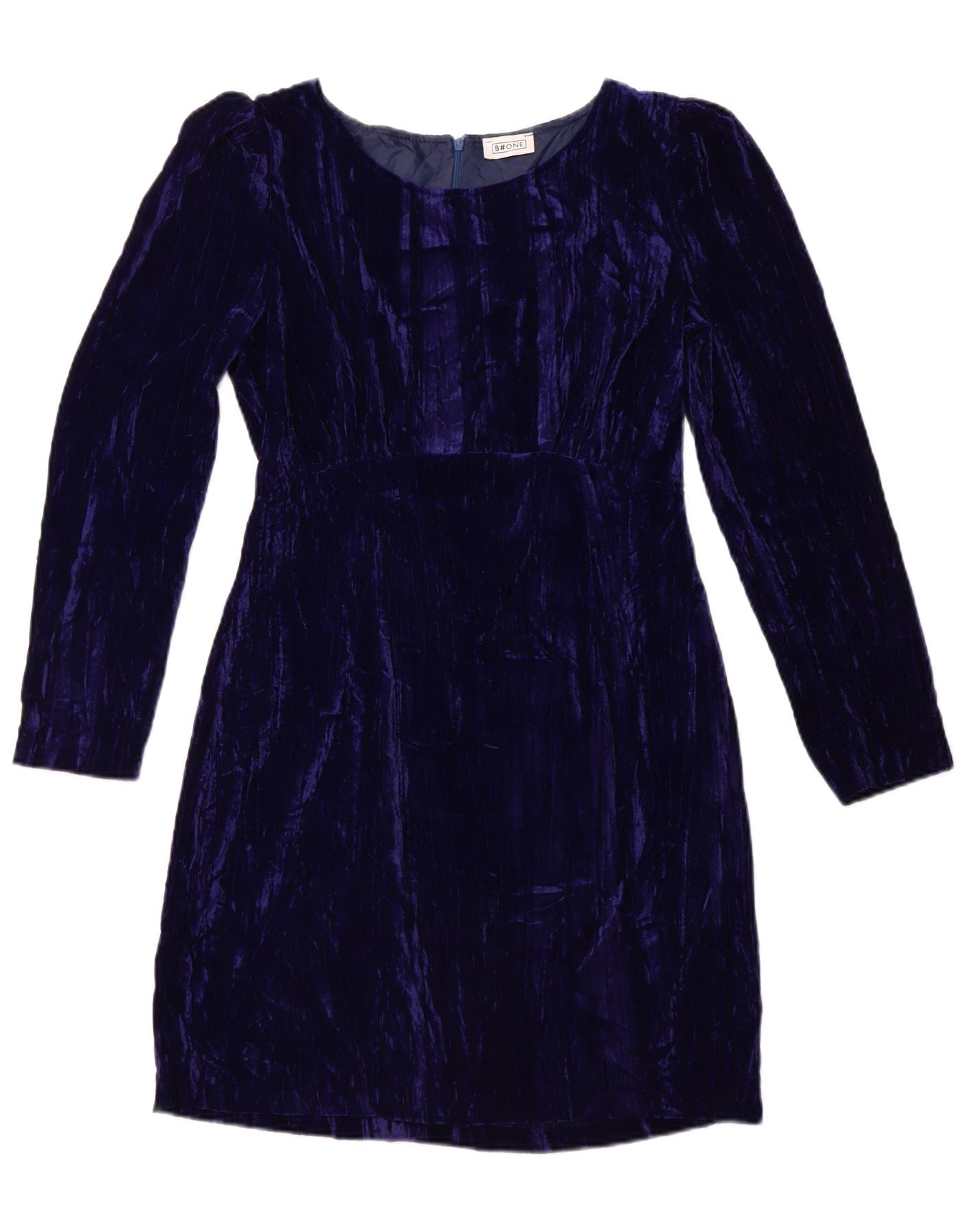 B.ONE Dame Langærmet Velour Skede Kjole UK 14 Stor Blå Polyester