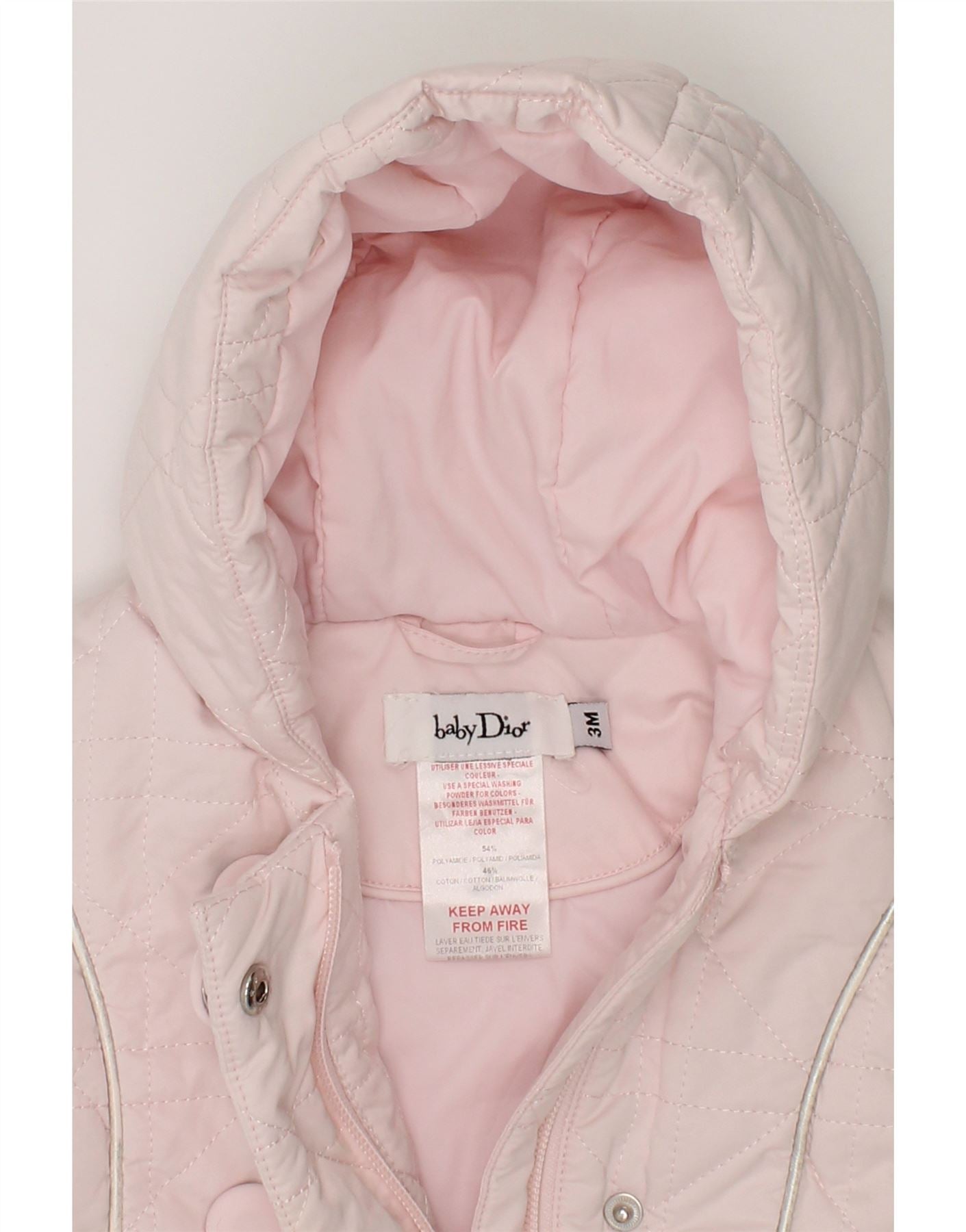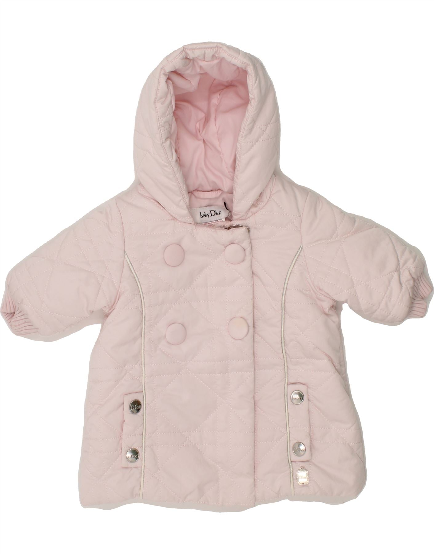 BABY DIOR Baby Girls Hooded Quilted Jacket 0-3 Months Pink Polyamide
