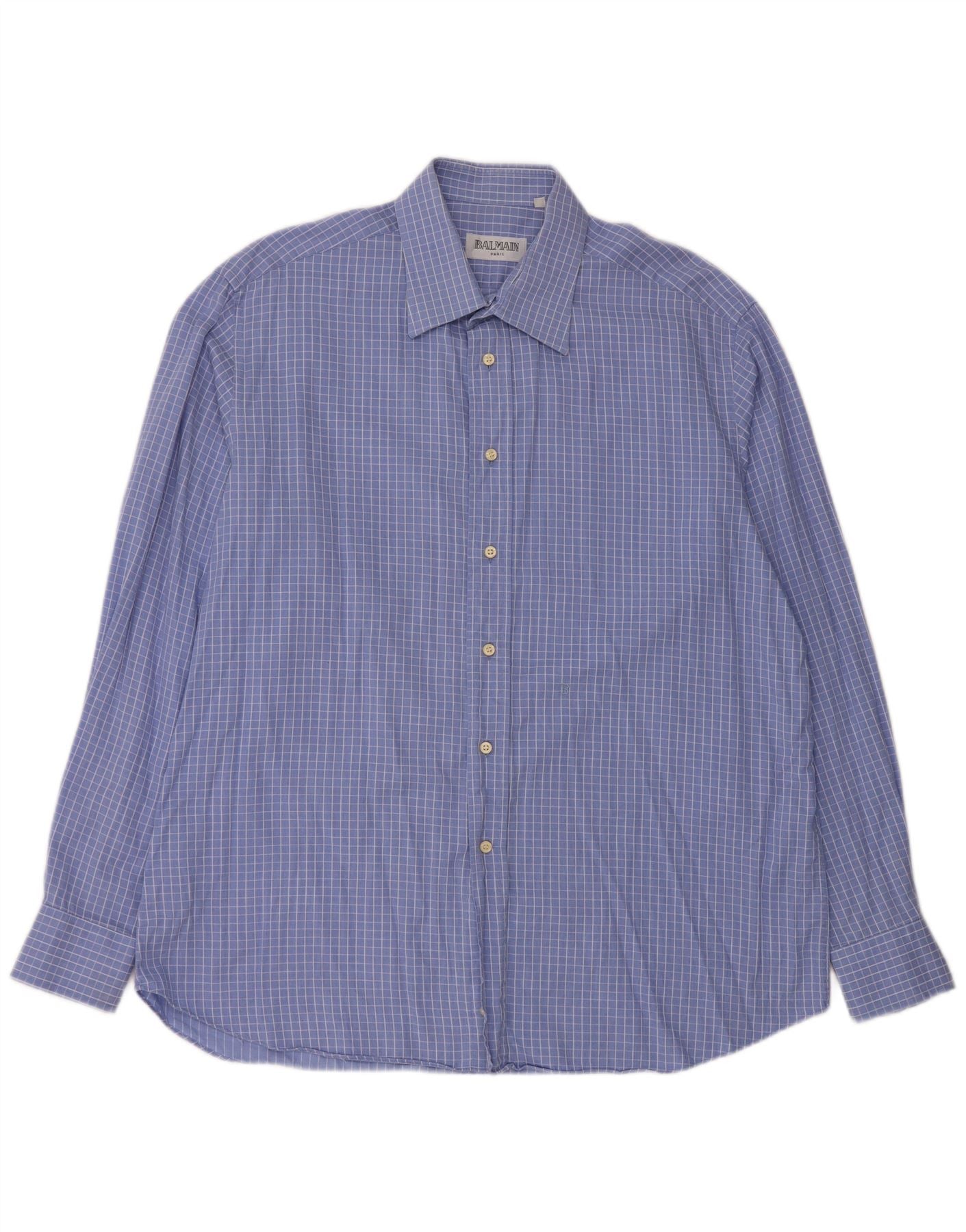 BALMAIN Mens Shirt Size 17 43 XL Blue Check Cotton
