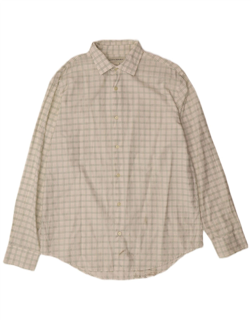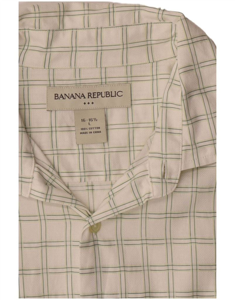 BANANA REPUBLIC Mens Shirt Size 16 1/2 Large Off White Check Cotton