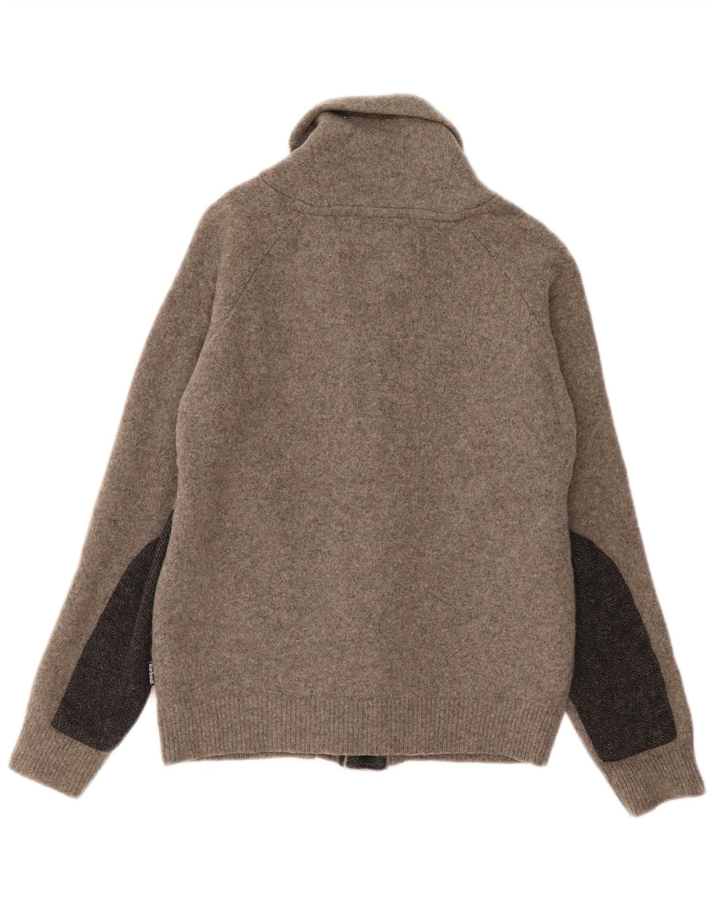 BARBOUR Drenge Cardigan Sweater 11-12 År Stor Grå Colourblock Uld