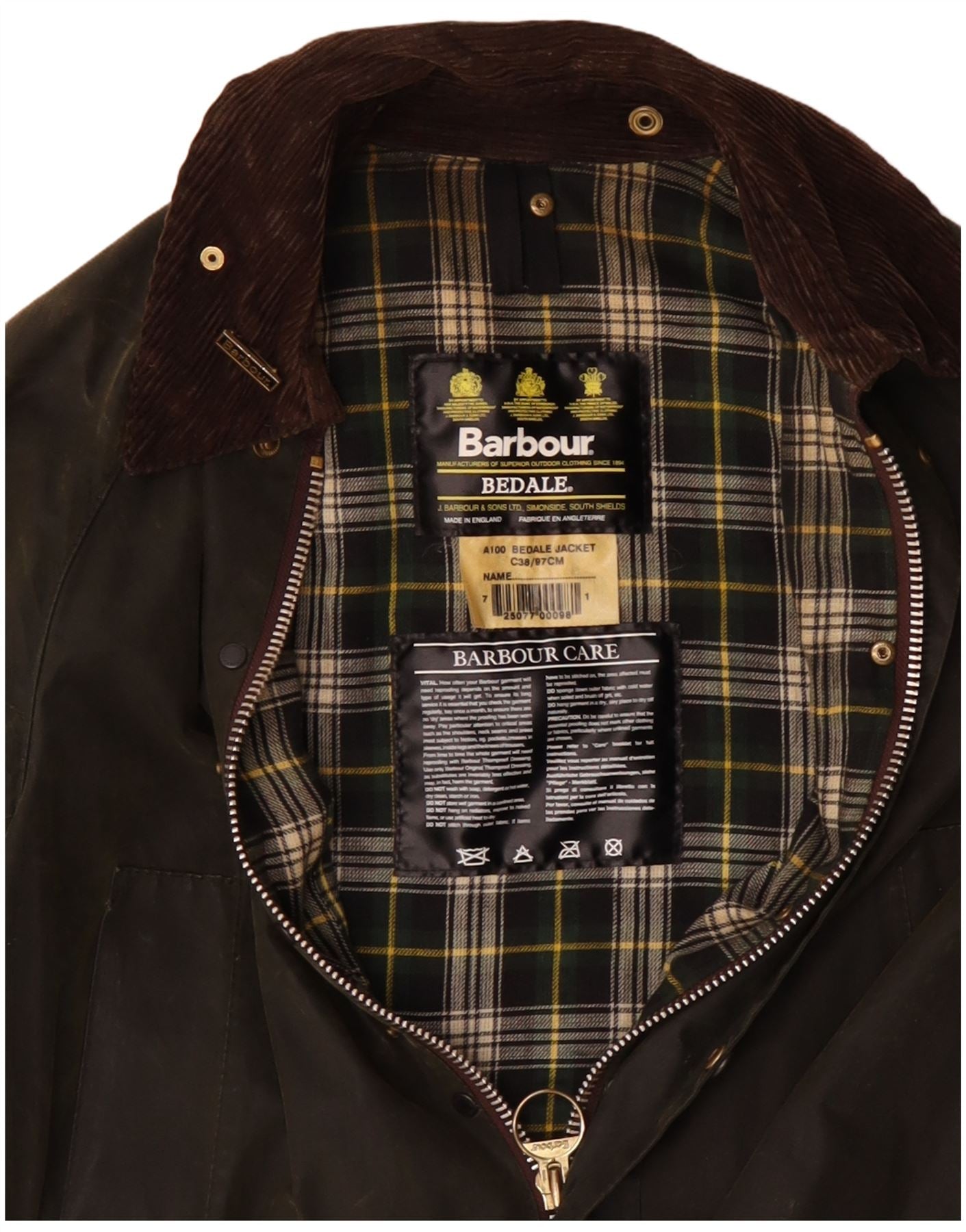 Home > Vintage Barbour tøj > Mænds > Jakker > BARBOUR Herre Bedale vokset bomuldsjakke UK 38 Medium Khaki
