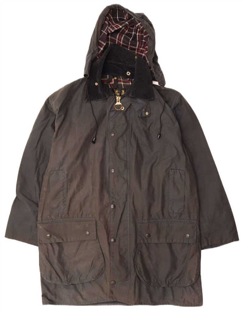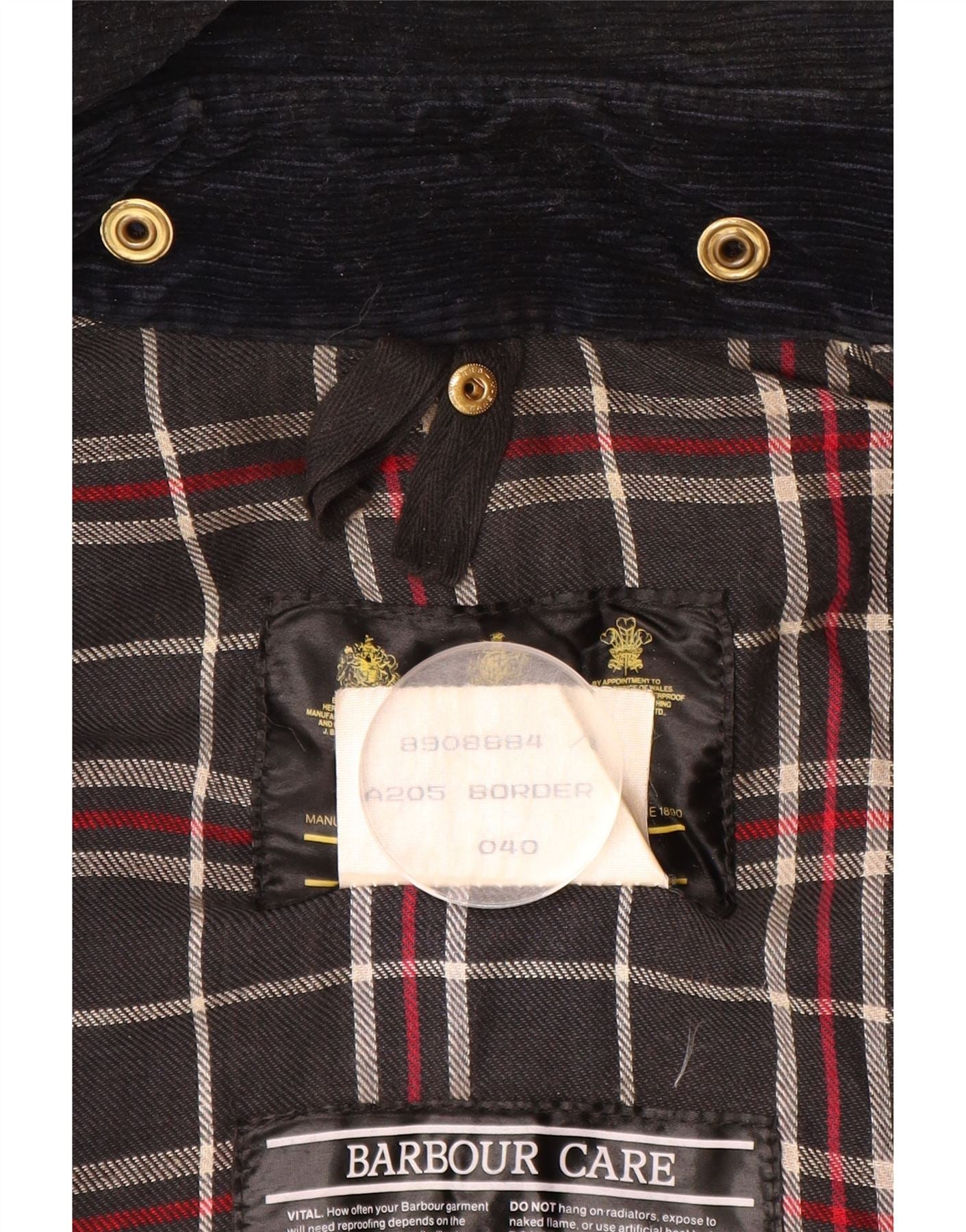 BARBOUR Mens Border Hooded Waxed Jacket UK 40 Medium Navy Blue Cotton