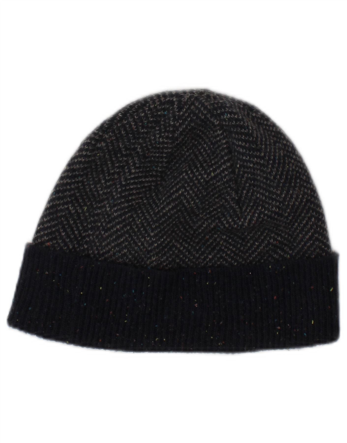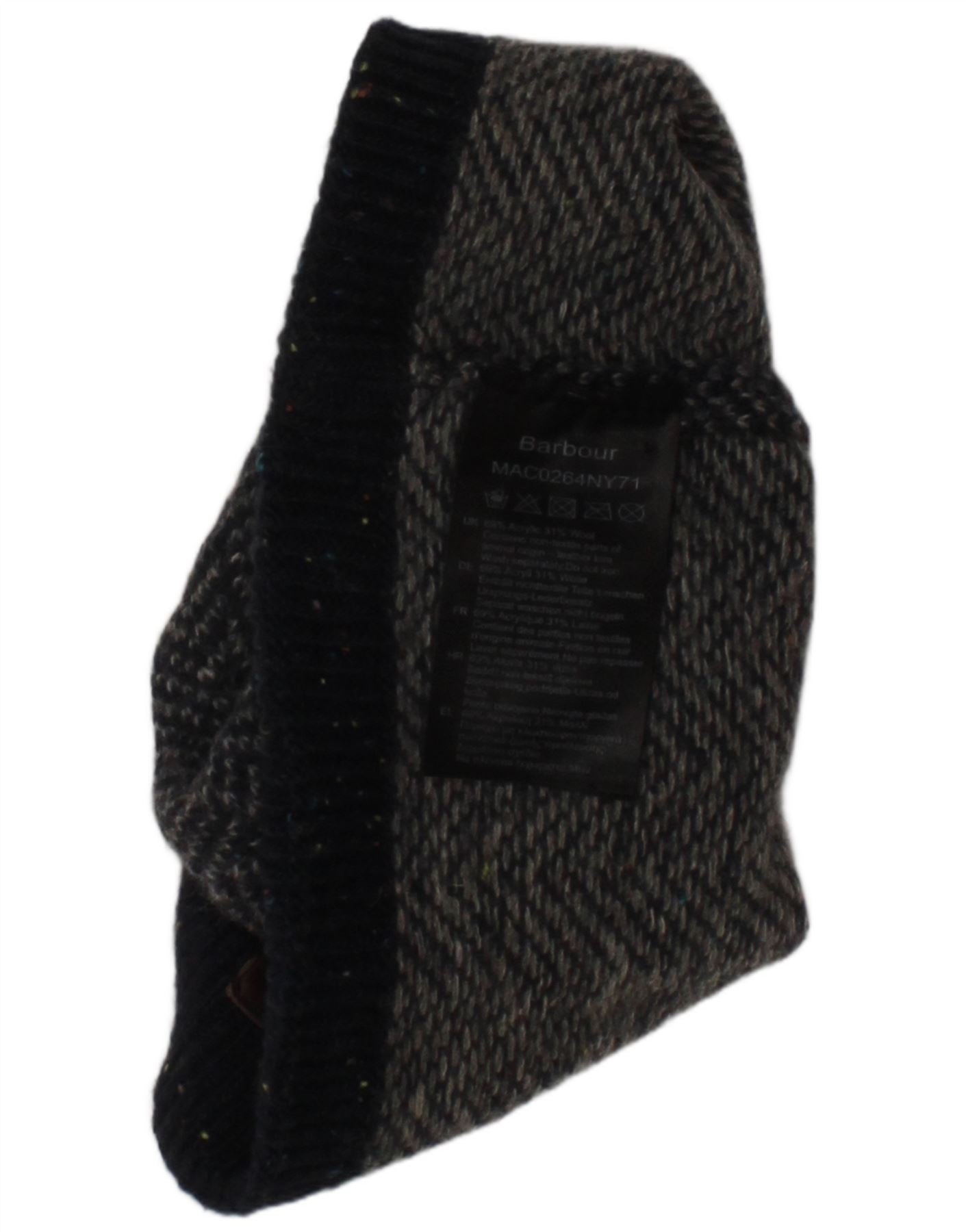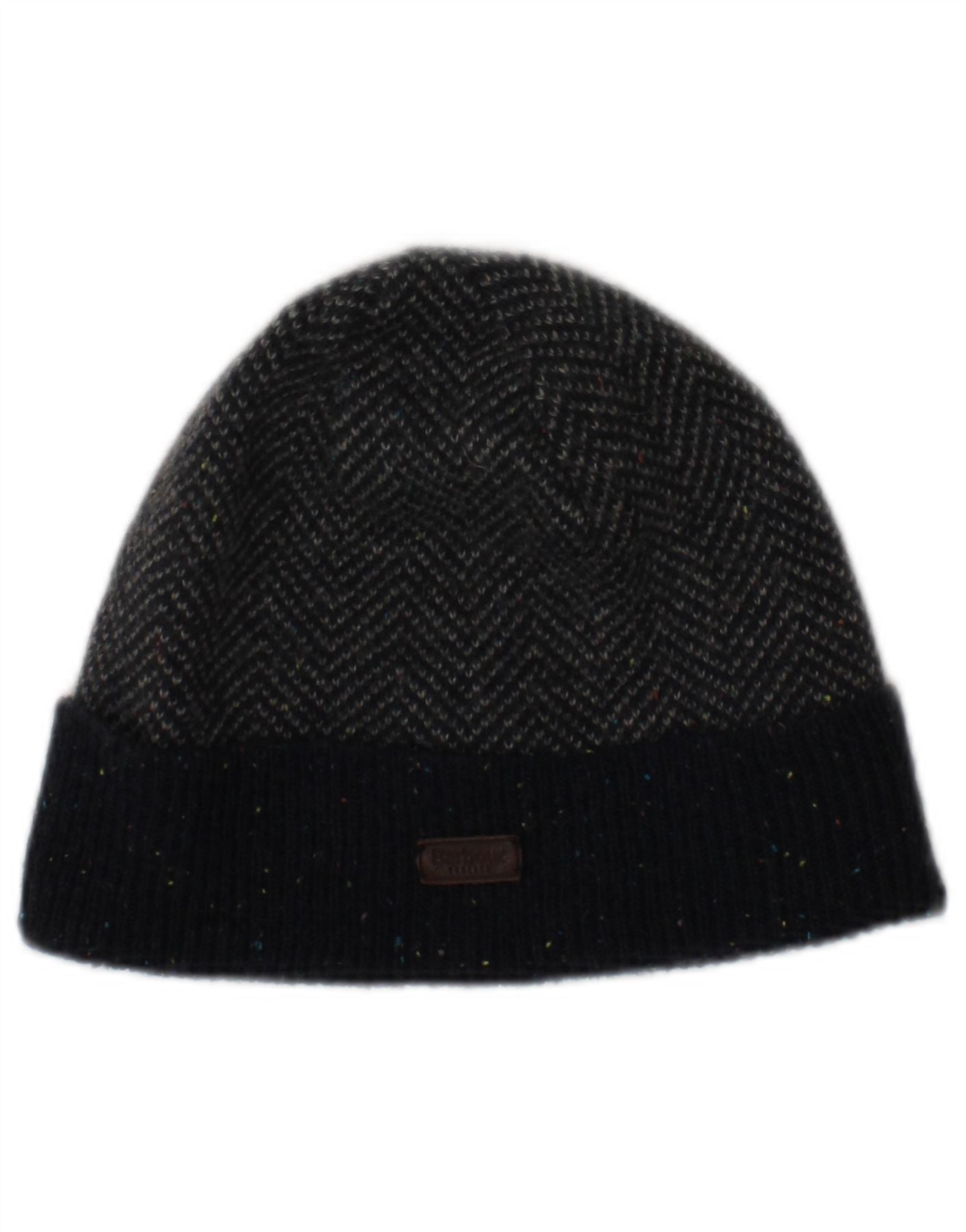 BARBOUR Mens Knit Beanie Hat One Size Grey Herringbone Acrylic Winter