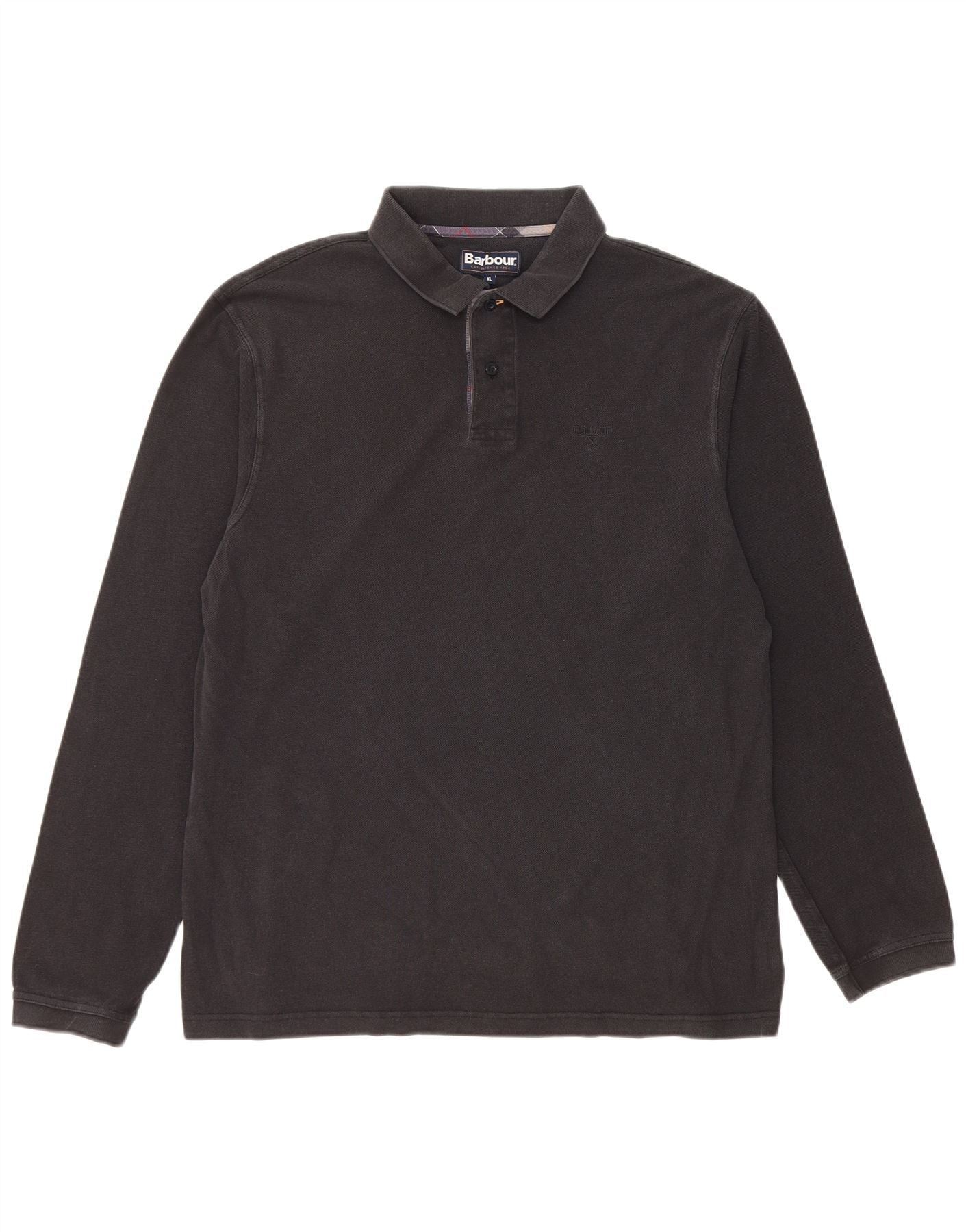 BARBOUR Langærmet poloshirt til mænd XL sort bomuld