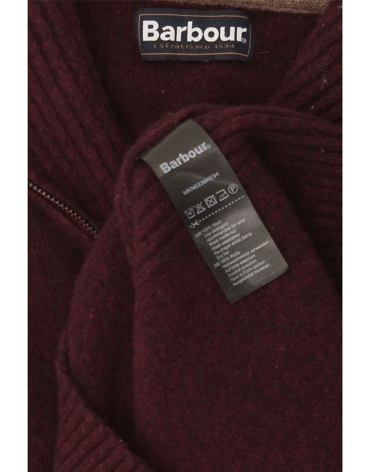BARBOUR Mens Zip Neck Jumper Sweater Medium Burgundy Wool