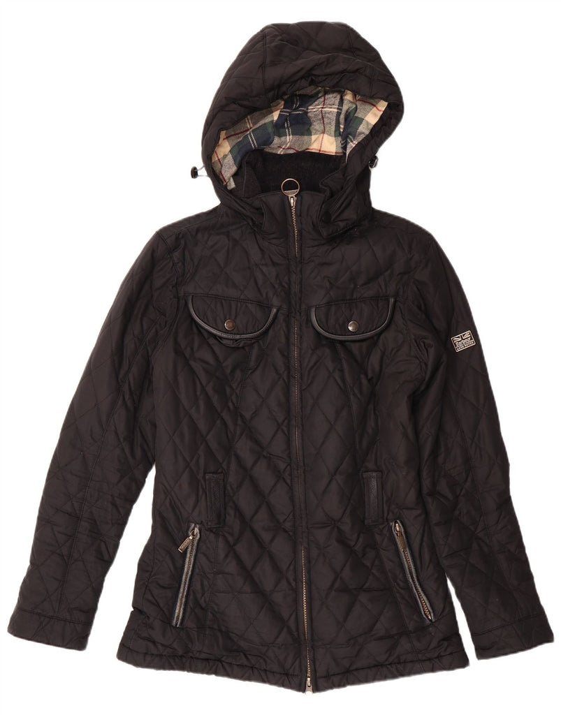 BARBOUR Womens Hooded Quilted Jacket UK 10 Small Black Polyester
