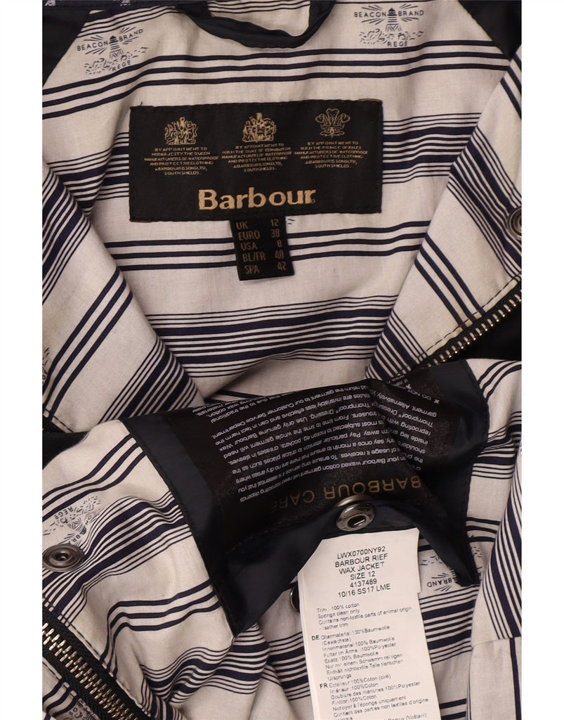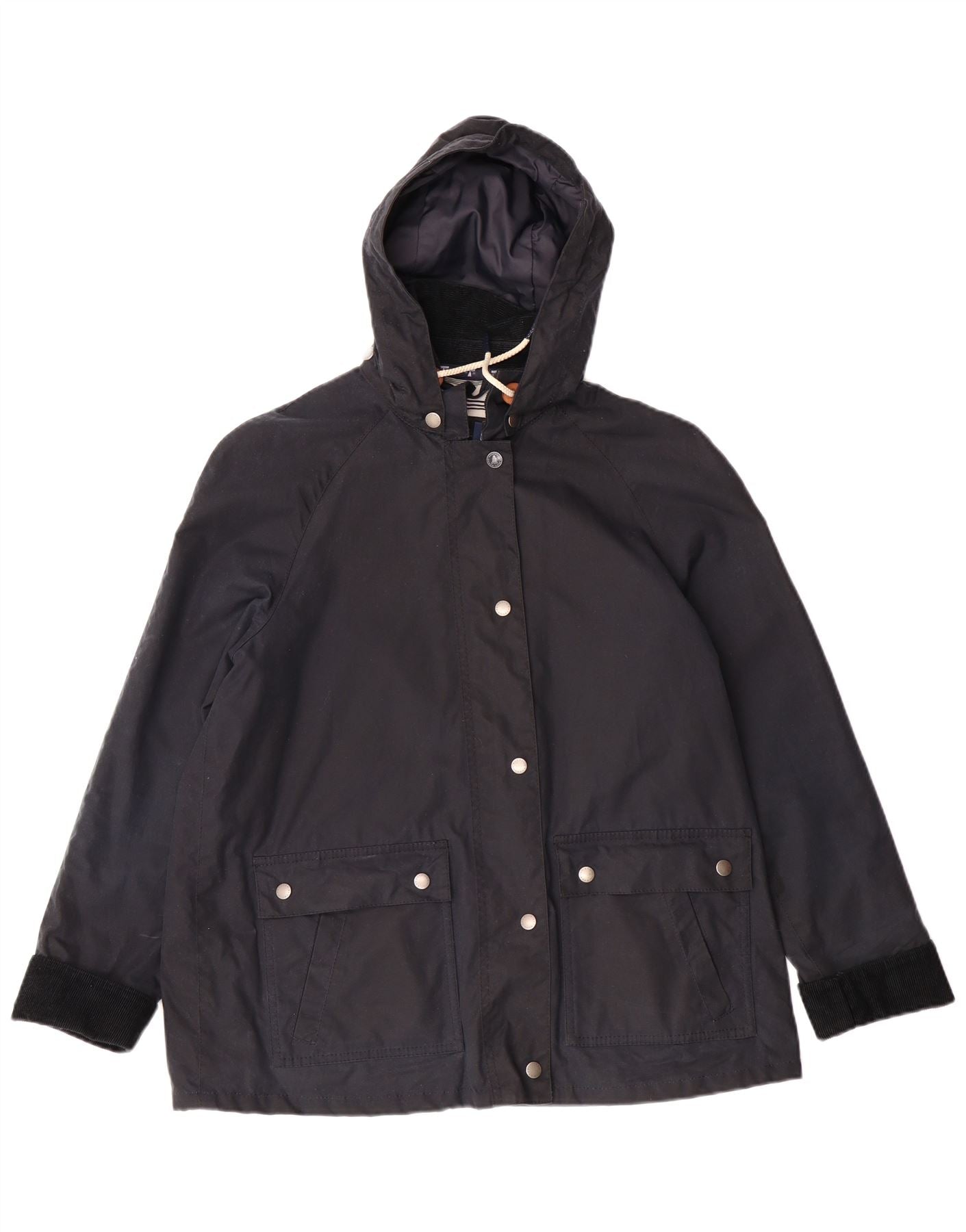 BARBOUR Womens Hooded Waxed Cotton Jacket UK 12 Medium Navy Blue Cotton