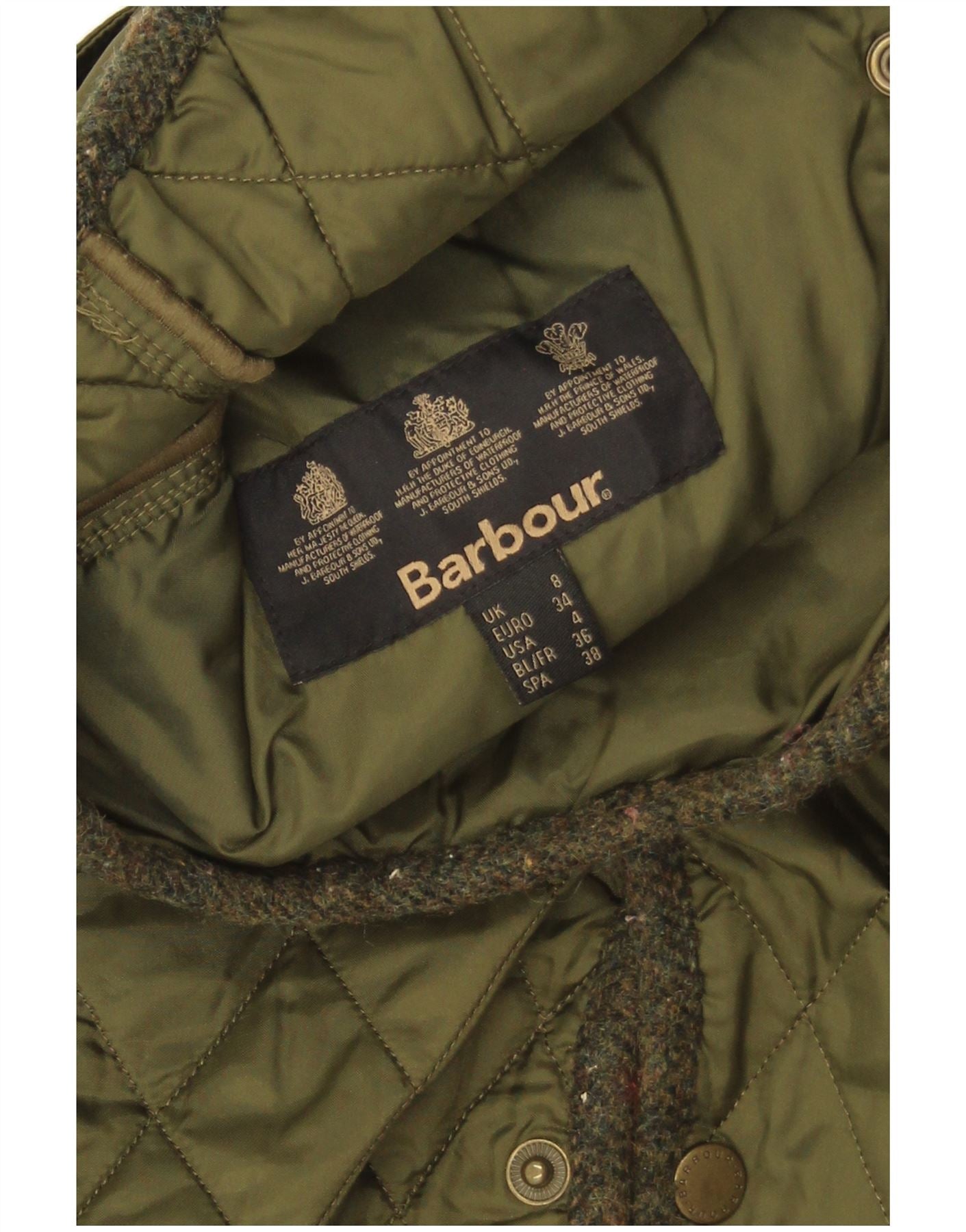 Barbour Quiltet jakke til kvinder UK 8 Small Khaki