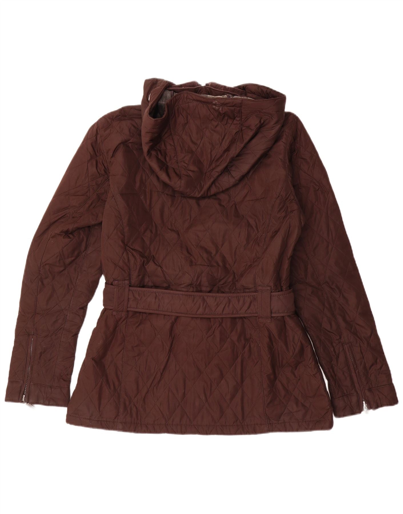 BARBOUR Dame Vinter Tartan Hætte Quiltet Jakke UK 12 Medium Brun