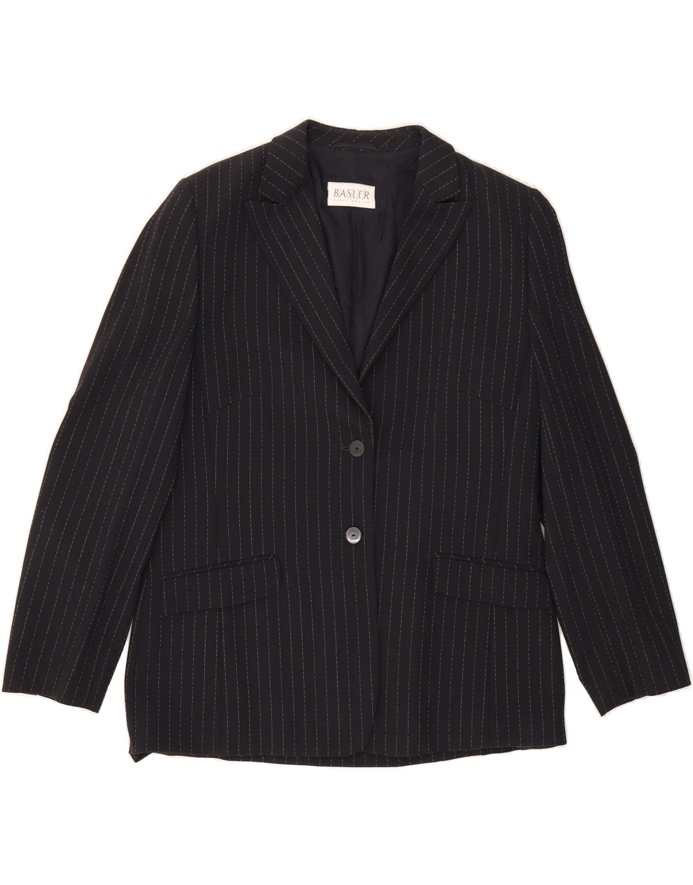 BASLER Womens 2 Button Blazer Jacket UK 16 Large Black Pinstripe Wool