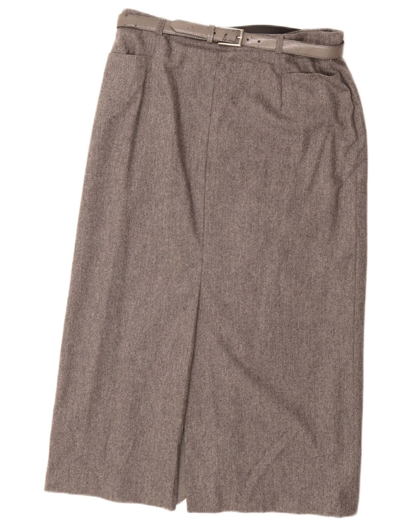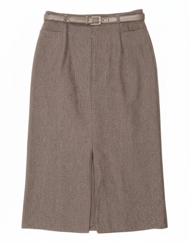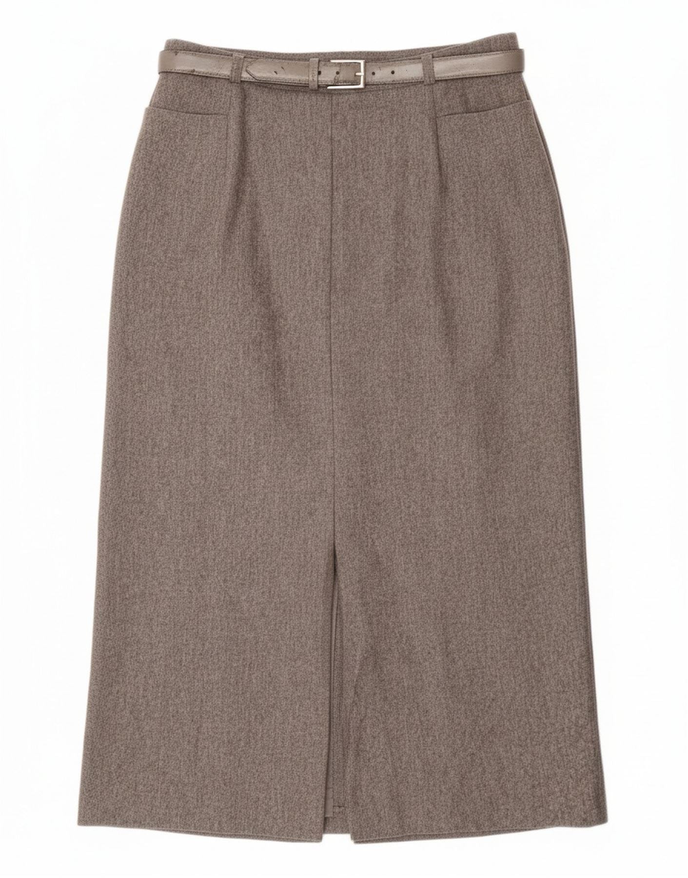 - AI Description: This Basler women's pencil skirt is crafted from grey tweed. The classic style features a regular fit and a pull-on closure. A belted waist with a buckle accent defines the silhouette. This skirt also features pockets. The tweed fabric adds a touch of texture and sophistication to this timeless piece.