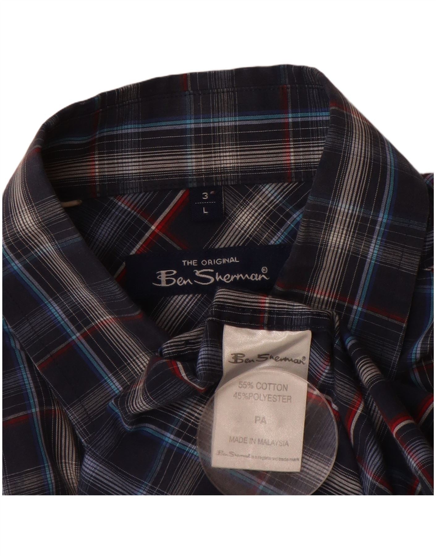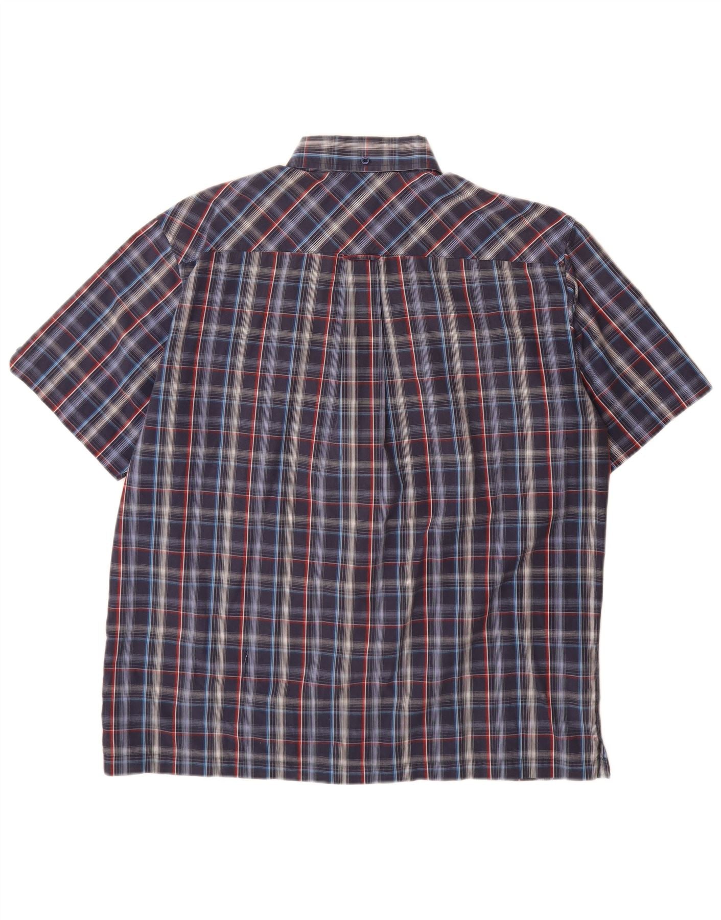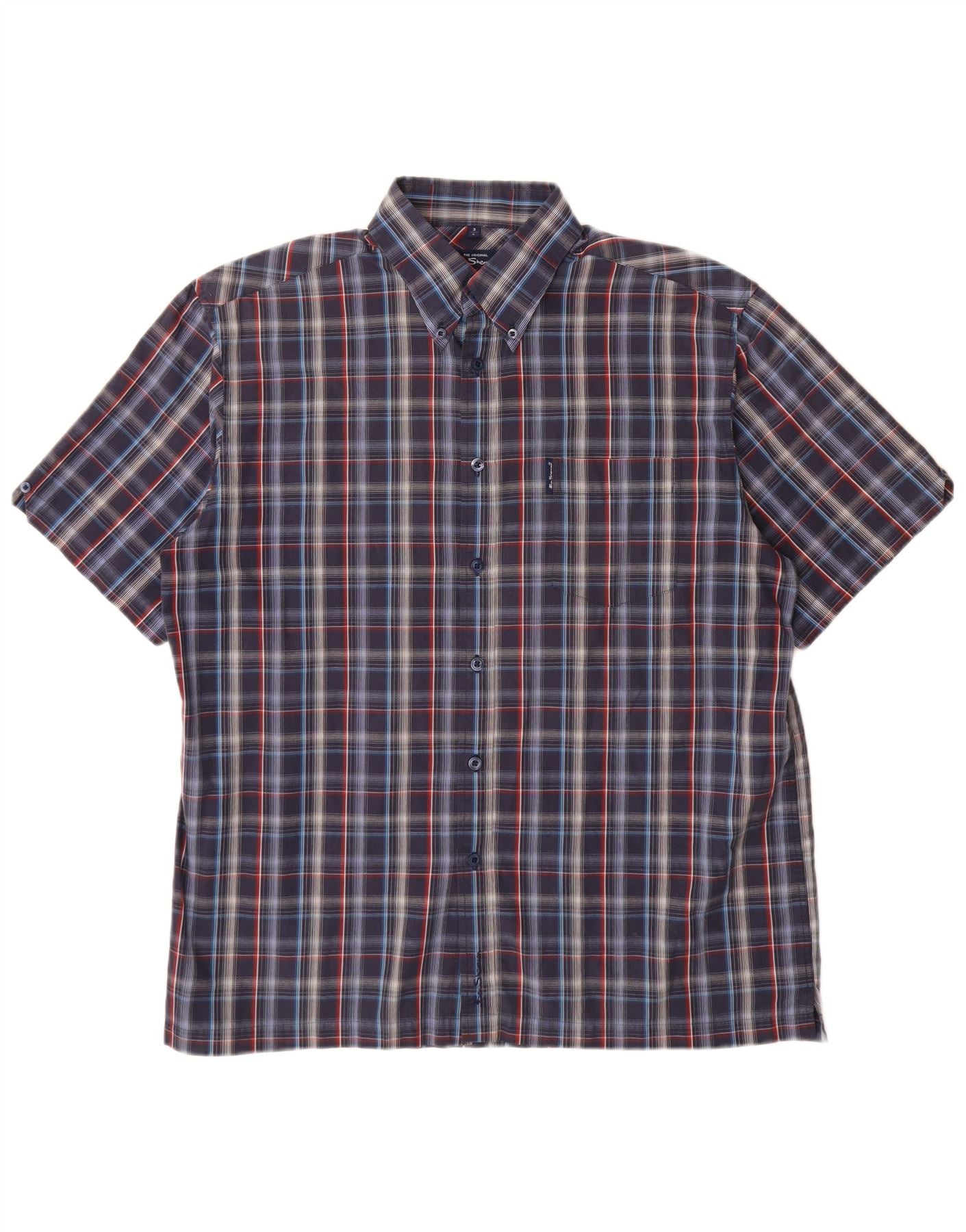 BEN SHERMAN Mens Short Sleeve Shirt Large Navy Blue Check Cotton