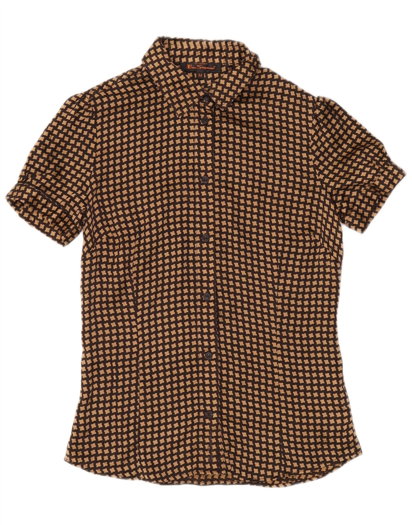 BEN SHERMAN skjortebluse til kvinder UK 12 Medium Brown Houndstooth