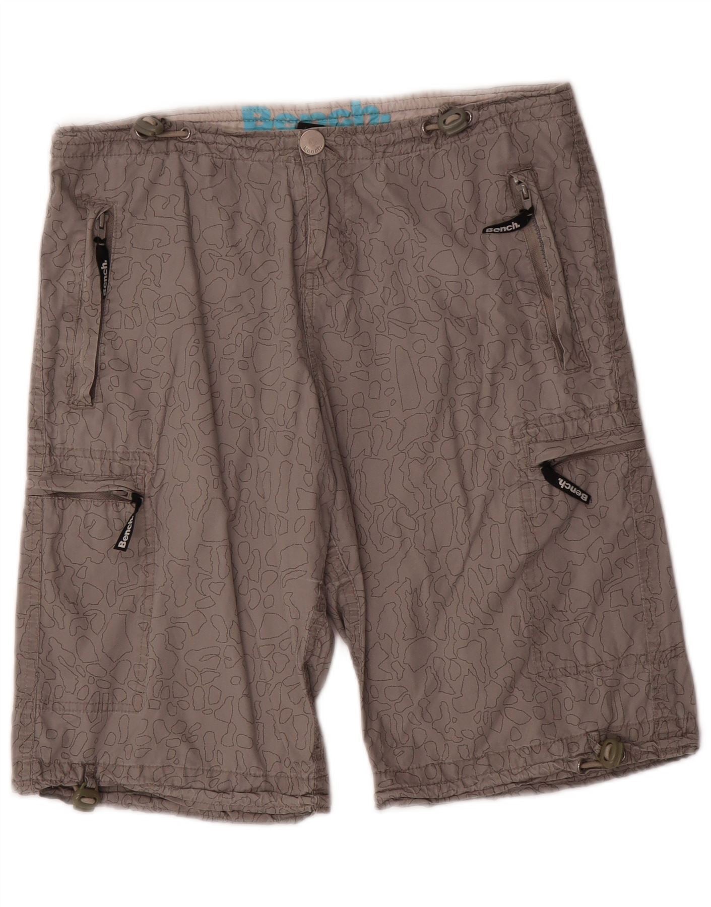 BÆNK Herre Cargo Shorts W28 Små Grå Geometrisk Bomuld