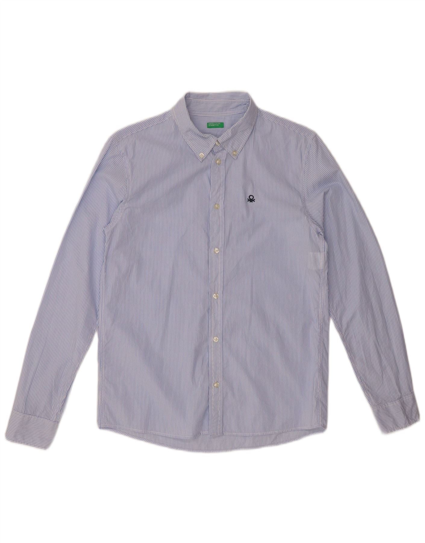 BENETTON drengeskjorte 13-14 år 3XL blå nålestribet bomuld