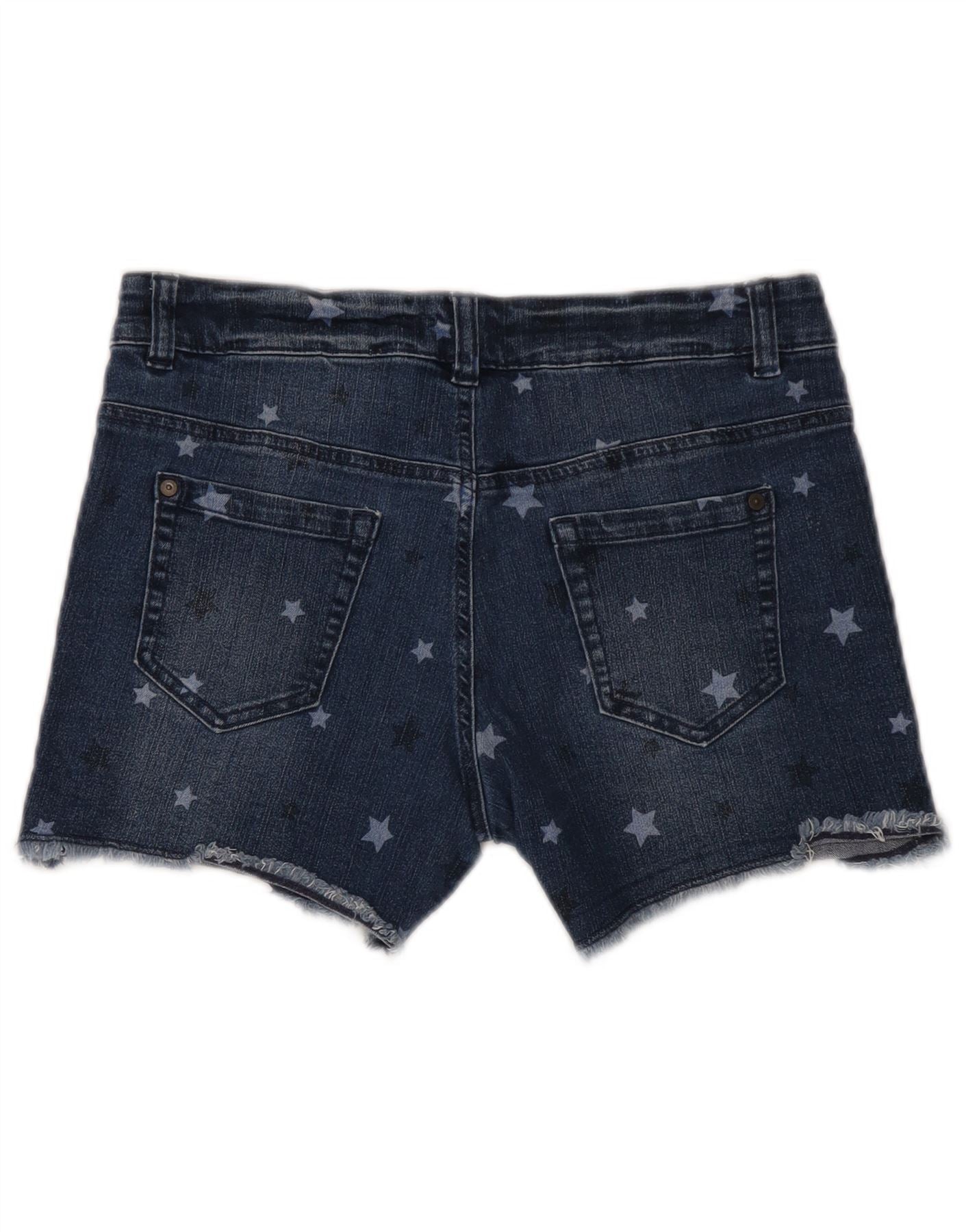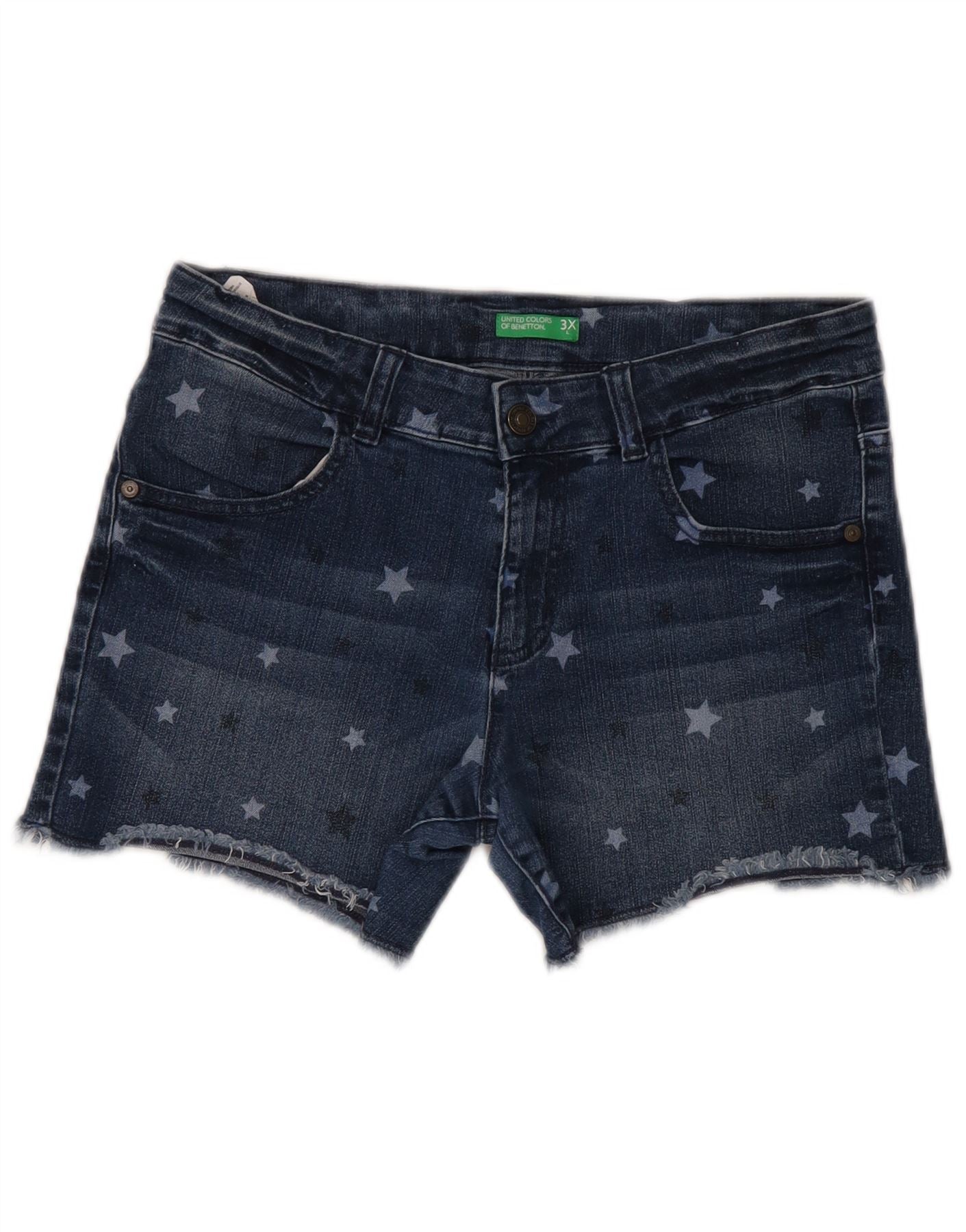 BENETTON Girls Abstract Pattern Denim Shorts 13-14 Years 3XL W32 Blue