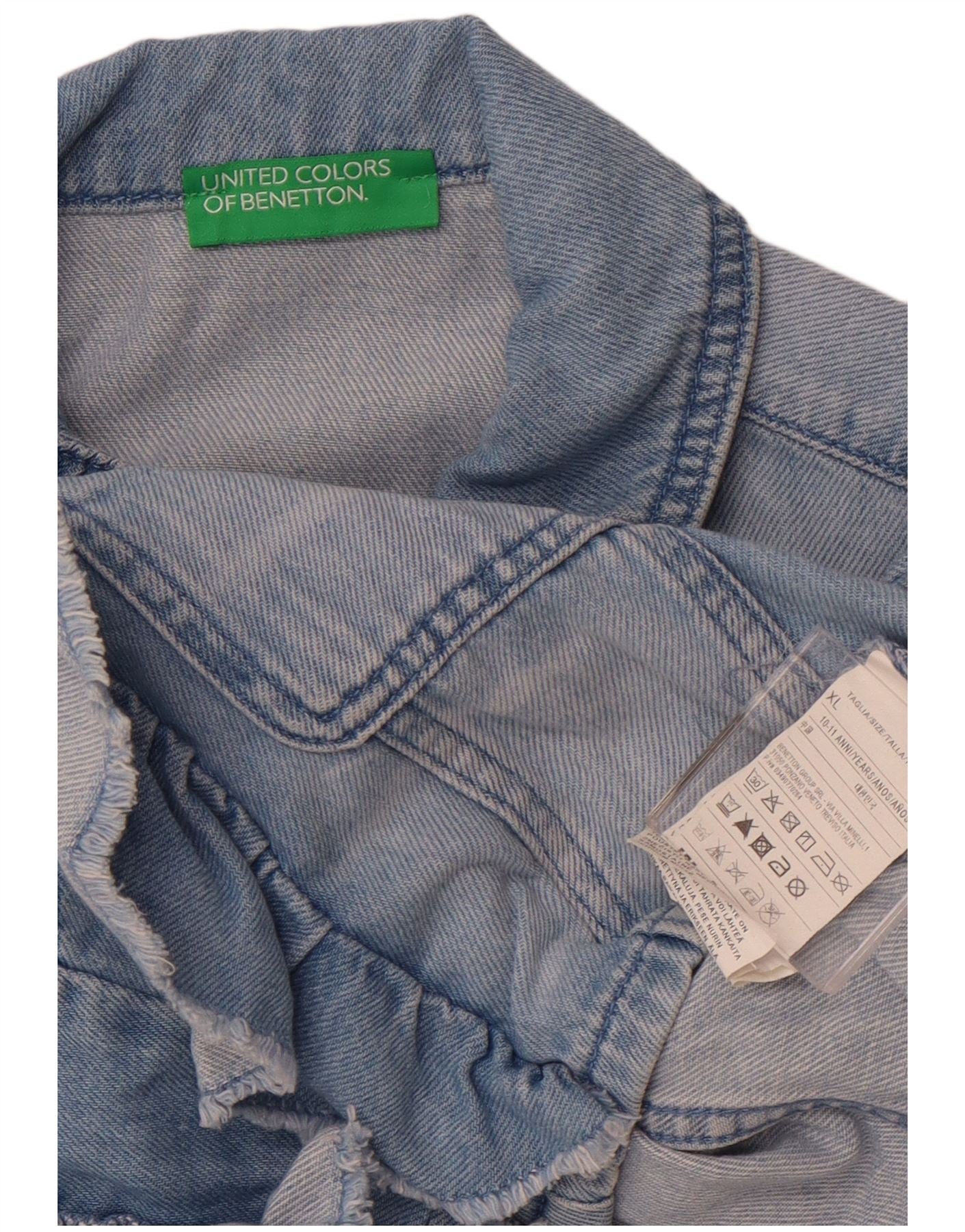Benetton Girls Crop Denim Gilet 10-11 år XL Blå Bomuld