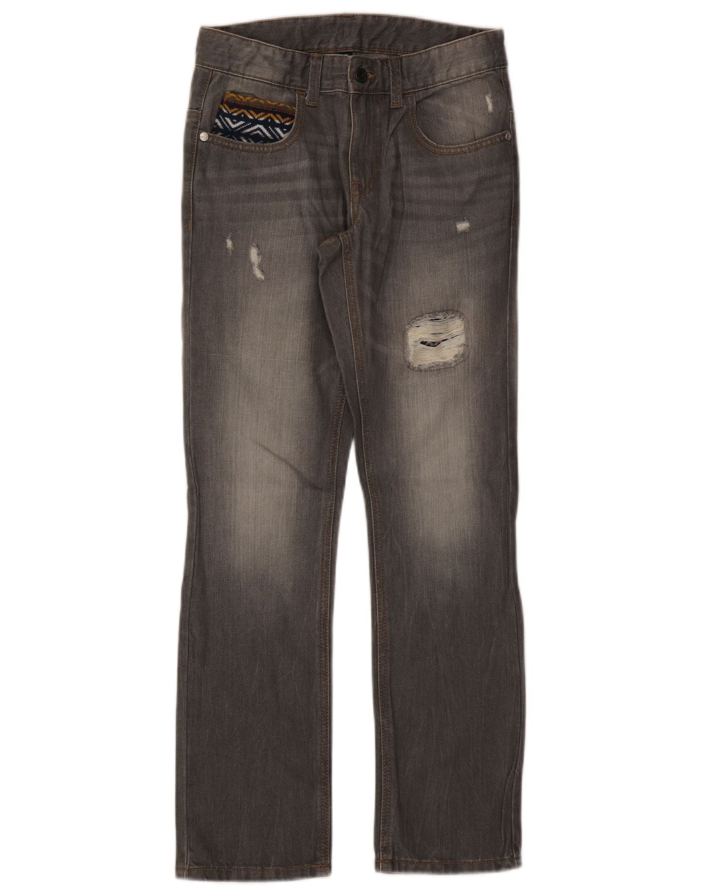 BENETTON Piger Distressed Straight Jeans 11-12 år 2XL B28 L28 Grå