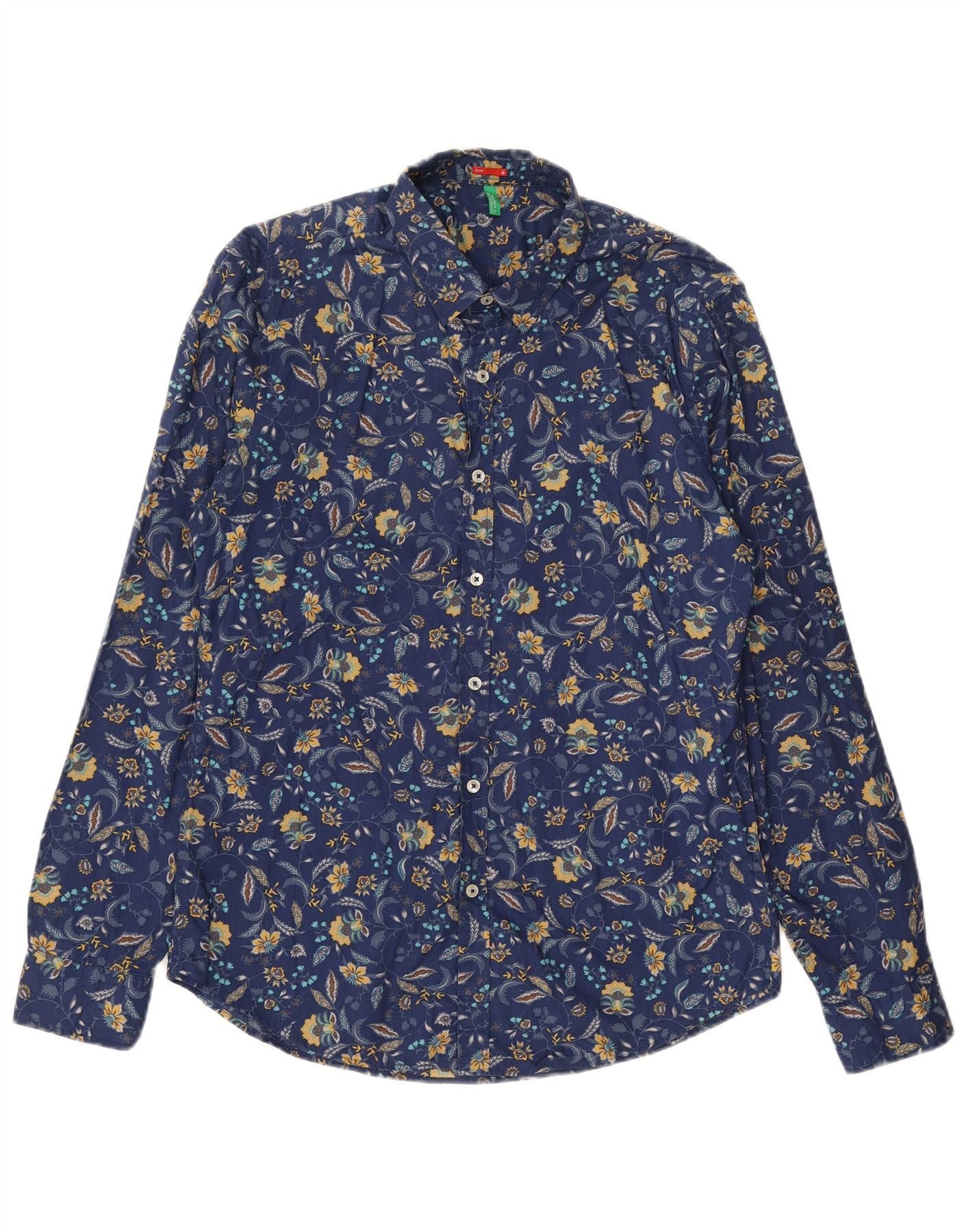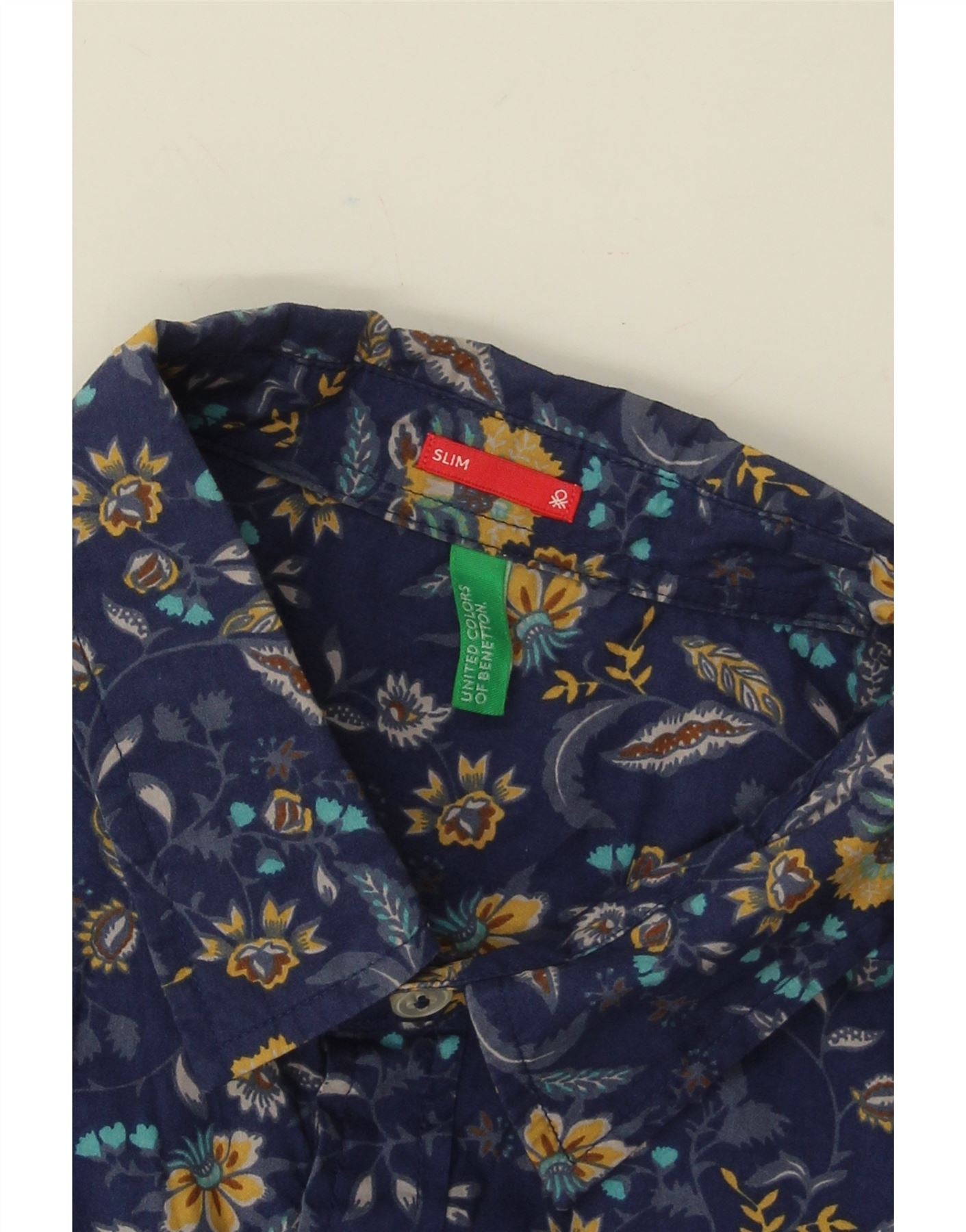 BENETTON Herre Slim Shirt Medium Navy Blue Floral