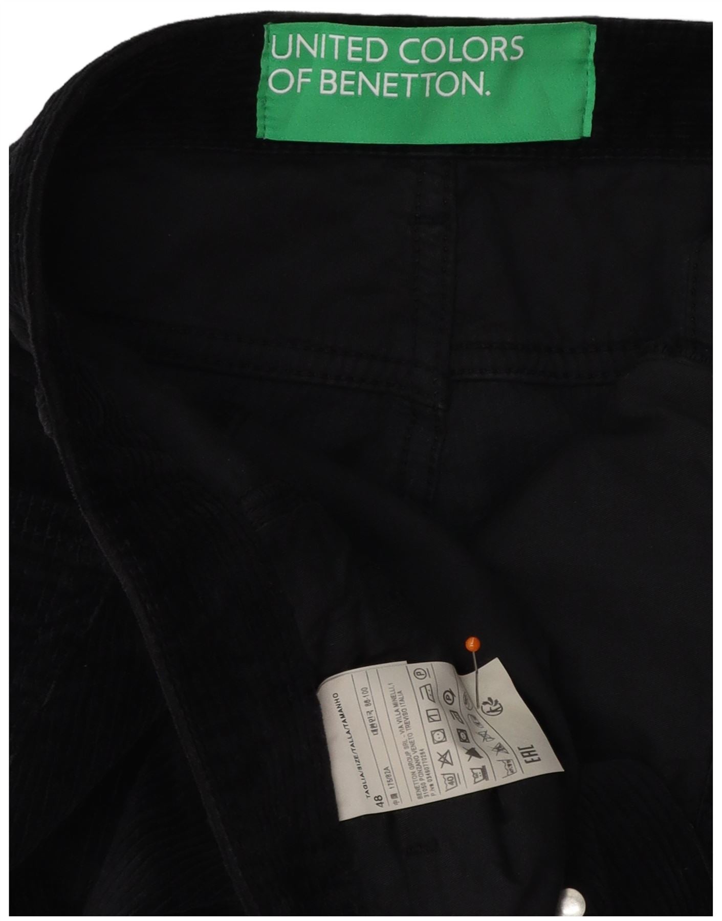 BENETTON Mens Straight Corduroy Trousers IT 48 Medium W32 L32 Black Cotton